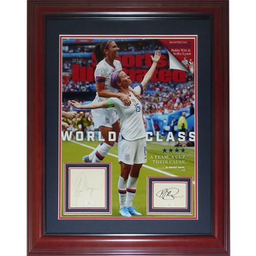 Celebrate the magic of US Women's Soccer with this deluxe framed 16x20 Sports Illustrated cover, hand-signed by the iconic duo Alex Morgan and Megan Rapinoe! This collector's item is authenticated by JSA, making it the perfect addition to any fan's collection. Own a piece of history and show your support for the champions!