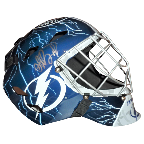 Show your team pride with this Andrei Vasilevskiy Autographed Tampa Bay Lightning Full-Size Goalie Mask! This mask features the signature of the star goaltender, providing a unique and valuable addition to any collection. It also comes with a JSA Witness certification, guaranteeing the authenticity of the autograph. Own a piece of Lightning history and showcase your love for the team with this truly special collector's item.