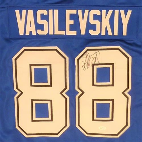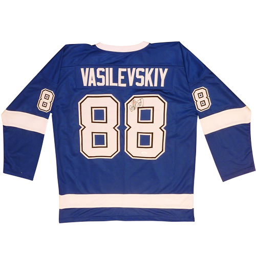 Get your hands on this limited edition Andrei Vasilevskiy autographed Tampa Bay Vasi custom hockey jersey! The perfect addition to any fan's collection, this jersey is signed by the star goalie himself! Display your team spirit and support with this one-of-a-kind jersey.