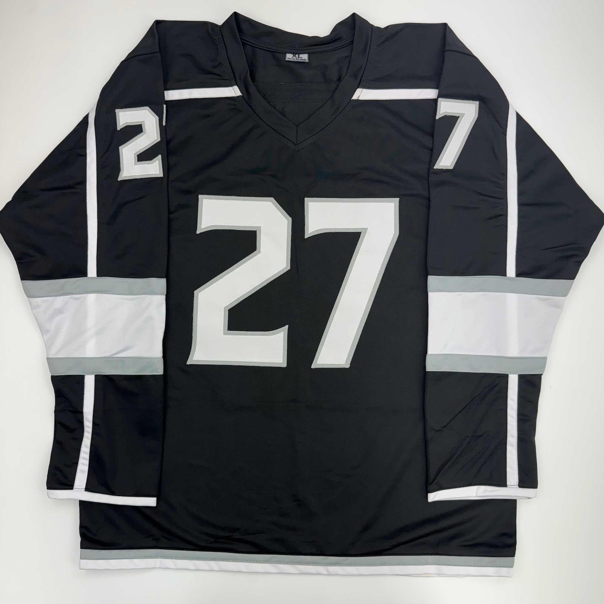 Jersey has no brand names or logos. This is a custom jersey and was not manufactured by or in any manner associated with any professional sports league or manufacturer. This custom jersey carries no professional sports league designation. The item is intended to be an autographed collectible. The custom jersey displays the name and number of the player. This item in no way is affiliated with or connected to any professional sports organization. Size is XL.