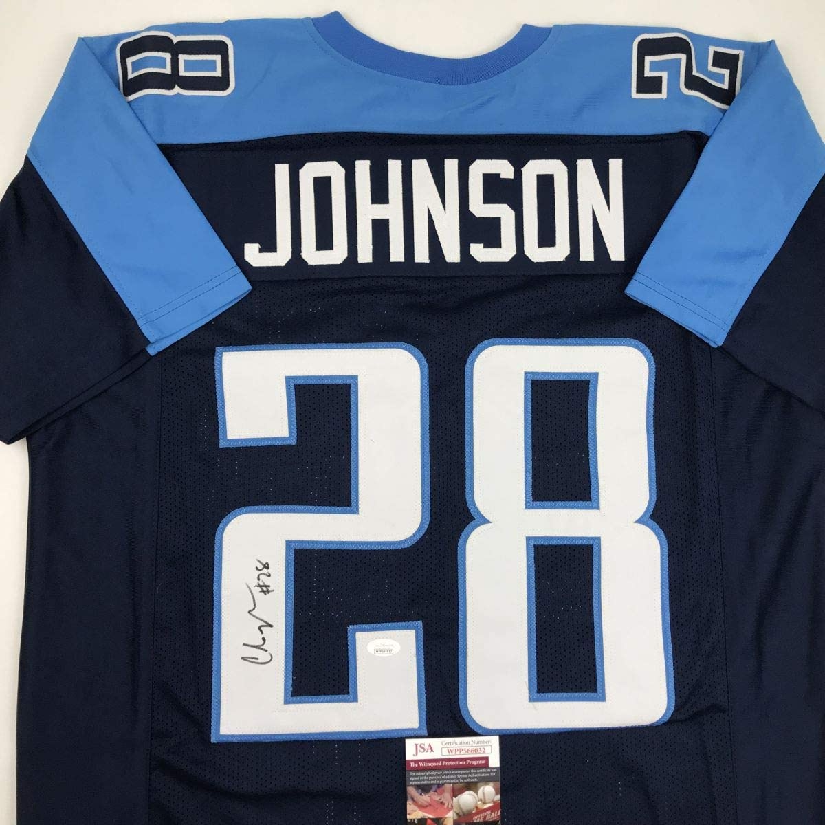 Autographed/Signed Chris Johnson Tennessee Dark Blue Football Jersey JSA COA