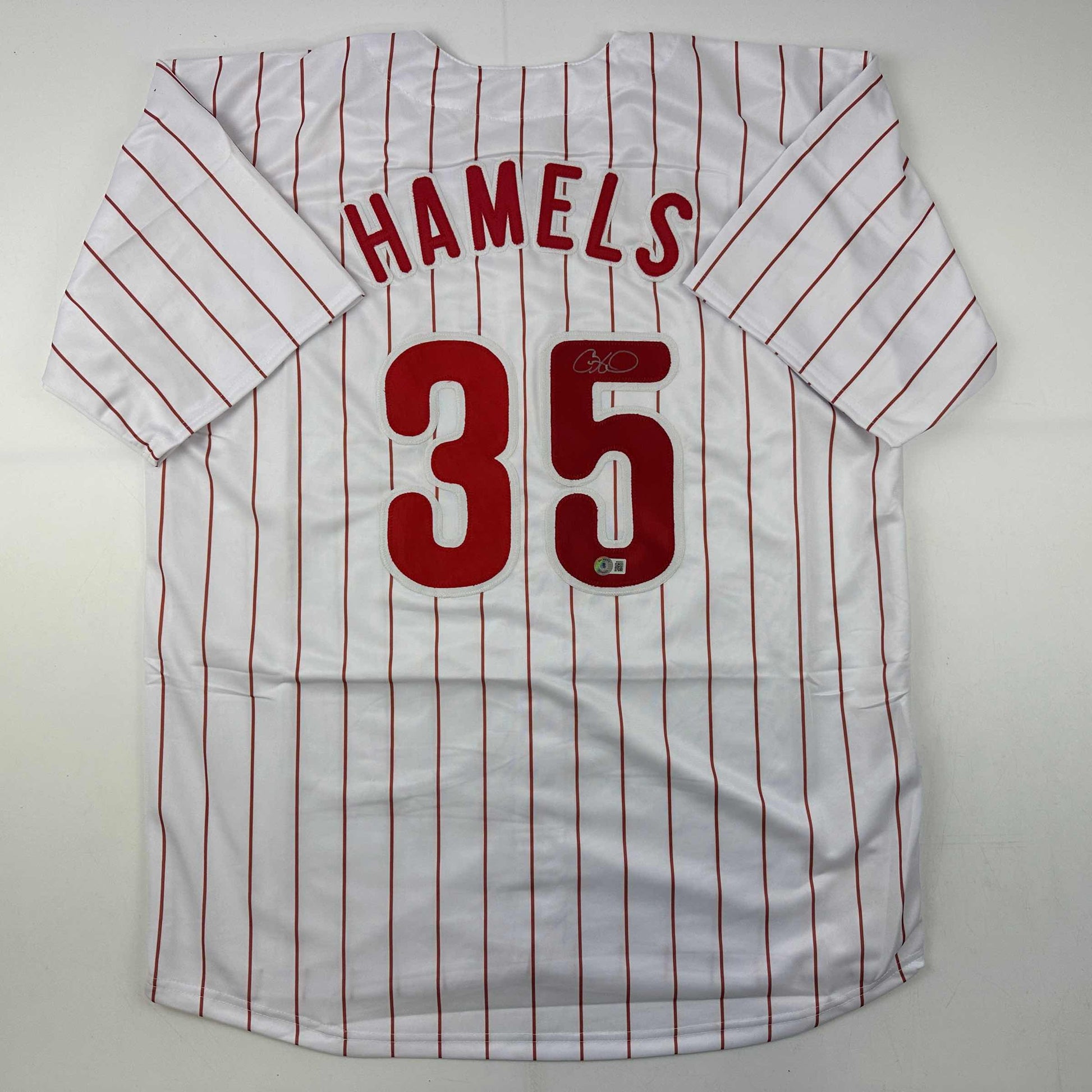 Autographed/Signed Cole Hamels Philadelphia Pinstripe Baseball Jersey Beckett BAS COA