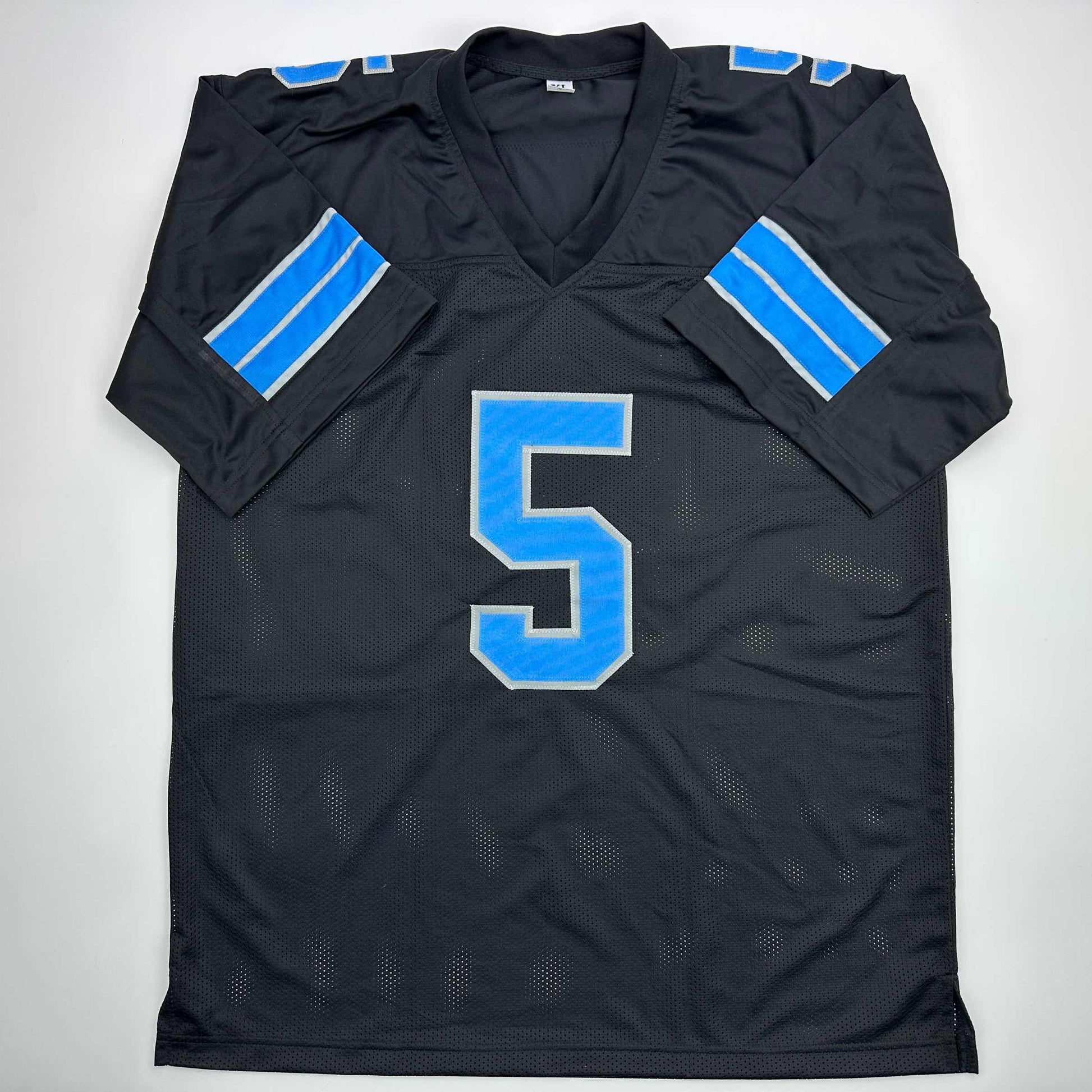 Jersey has no brand names or logos. This is a custom jersey and was not manufactured by or in any manner associated with any professional sports league or manufacturer. This custom jersey carries no professional sports league designation. The item is intended to be an autographed collectible. The custom jersey displays the name and number of the player. This item in no way is affiliated with or connected to any professional sports organization. Size is XL.