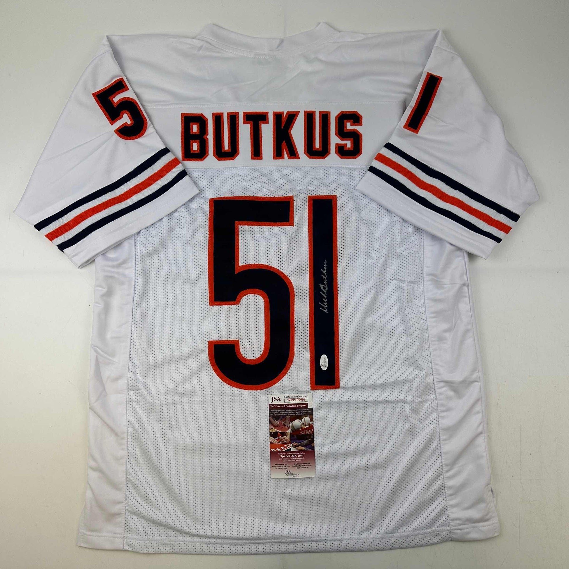 Autographed/Signed Dick Butkus Chicago White Football Jersey JSA COA