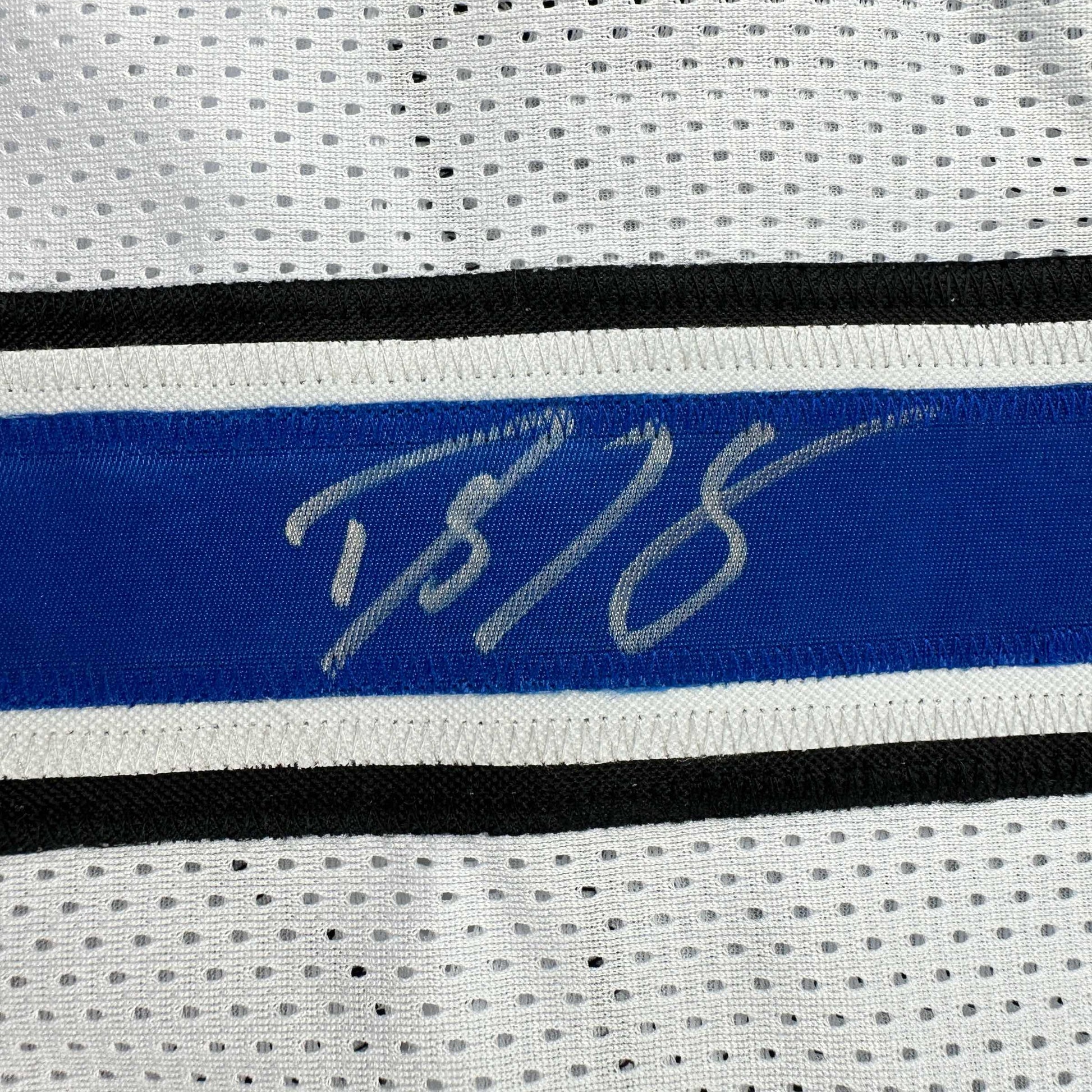 Jersey has no brand names or logos. This is a custom jersey and was not manufactured by or in any manner associated with any professional sports league or manufacturer. This custom jersey carries no professional sports league designation. The item is intended to be an autographed collectible. The custom jersey displays the name and number of the player. This item in no way is affiliated with or connected to any professional sports organization. Size is XL.