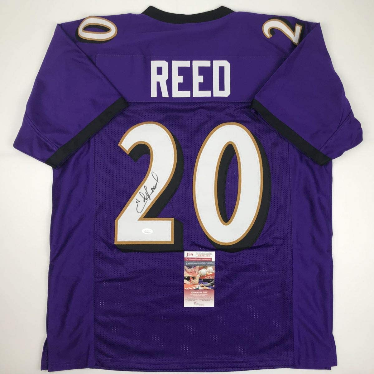 Autographed/Signed Ed Reed Baltimore Purple Football Jersey JSA COA