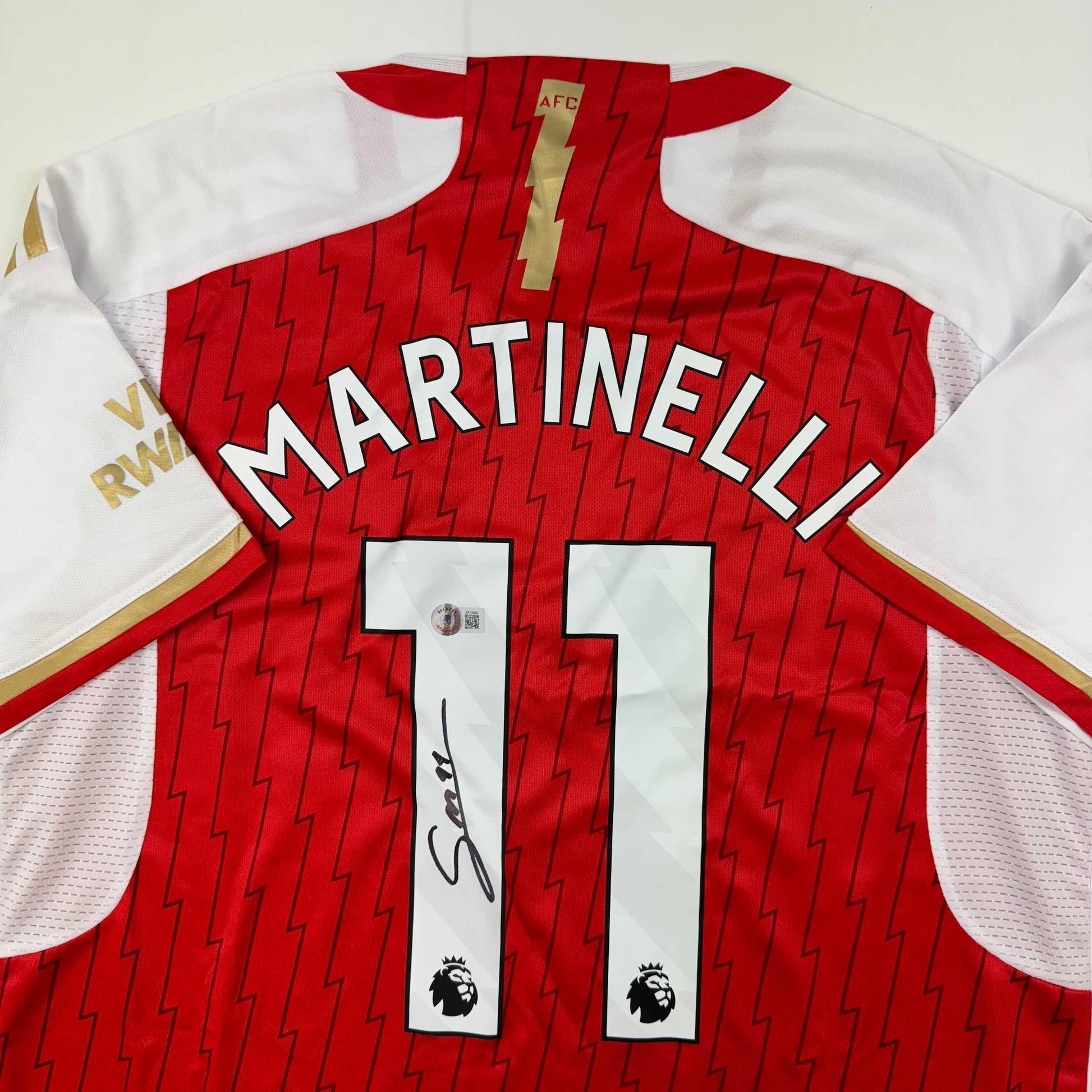 Autographed/Signed Gabriel Martinelli Arsenal Red Soccer Jersey Beckett BAS COA
