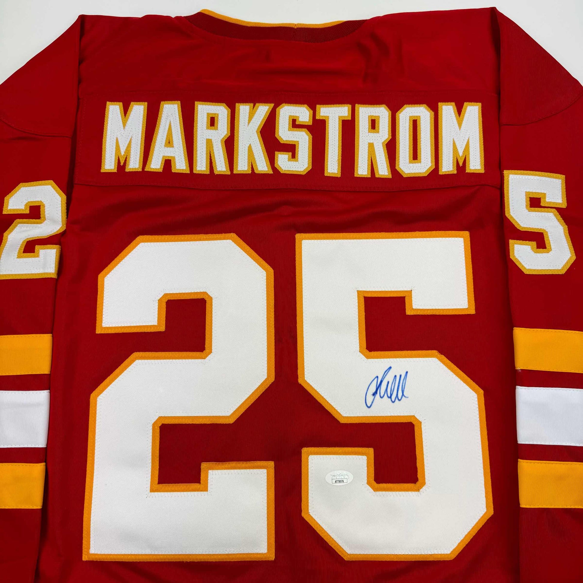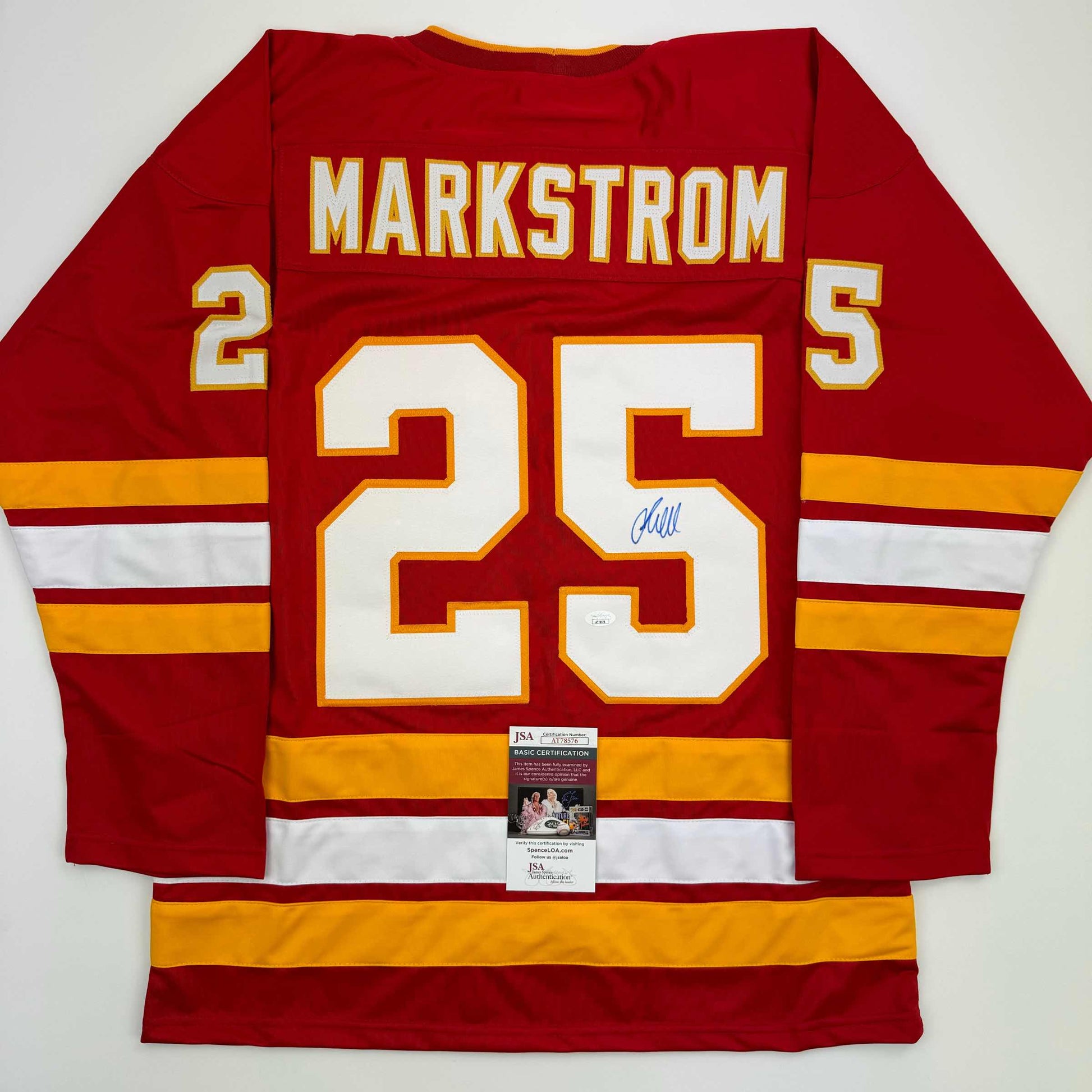 Autographed/Signed Jacob Markstrom Calgary Red Hockey Jersey JSA COA
