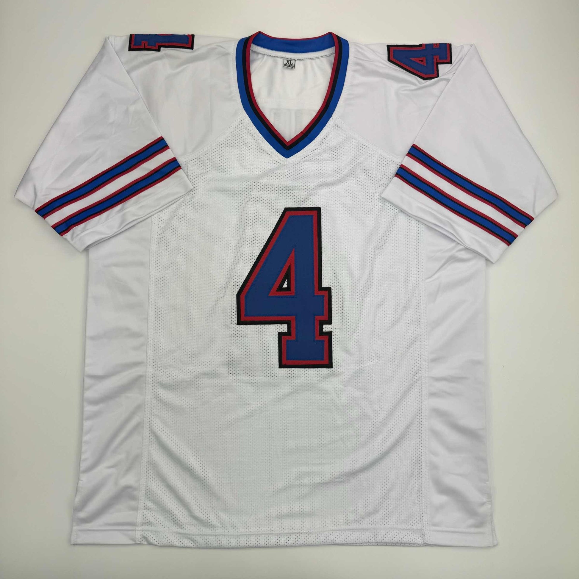 Jersey has no brand names or logos. This is a custom jersey and was not manufactured by or in any manner associated with any professional sports league or manufacturer. This custom jersey carries no professional sports league designation. The item is intended to be an autographed collectible. The custom jersey displays the name and number of the player. This item in no way is affiliated with or connected to any professional sports organization. Size is XL.