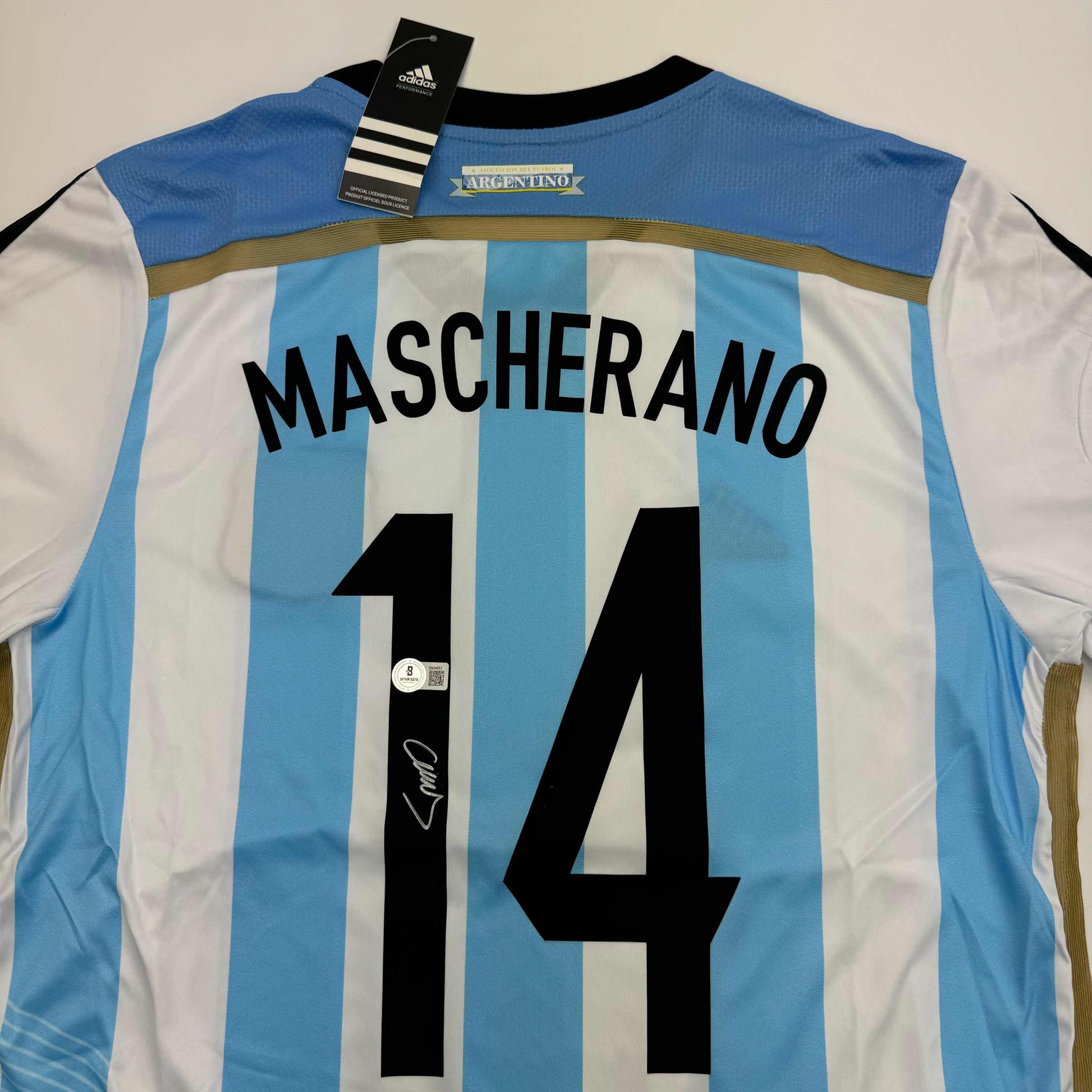Autographed/Signed Javier Mascherano Argentina Blue Soccer Futbol Jersey Beckett BAS COA