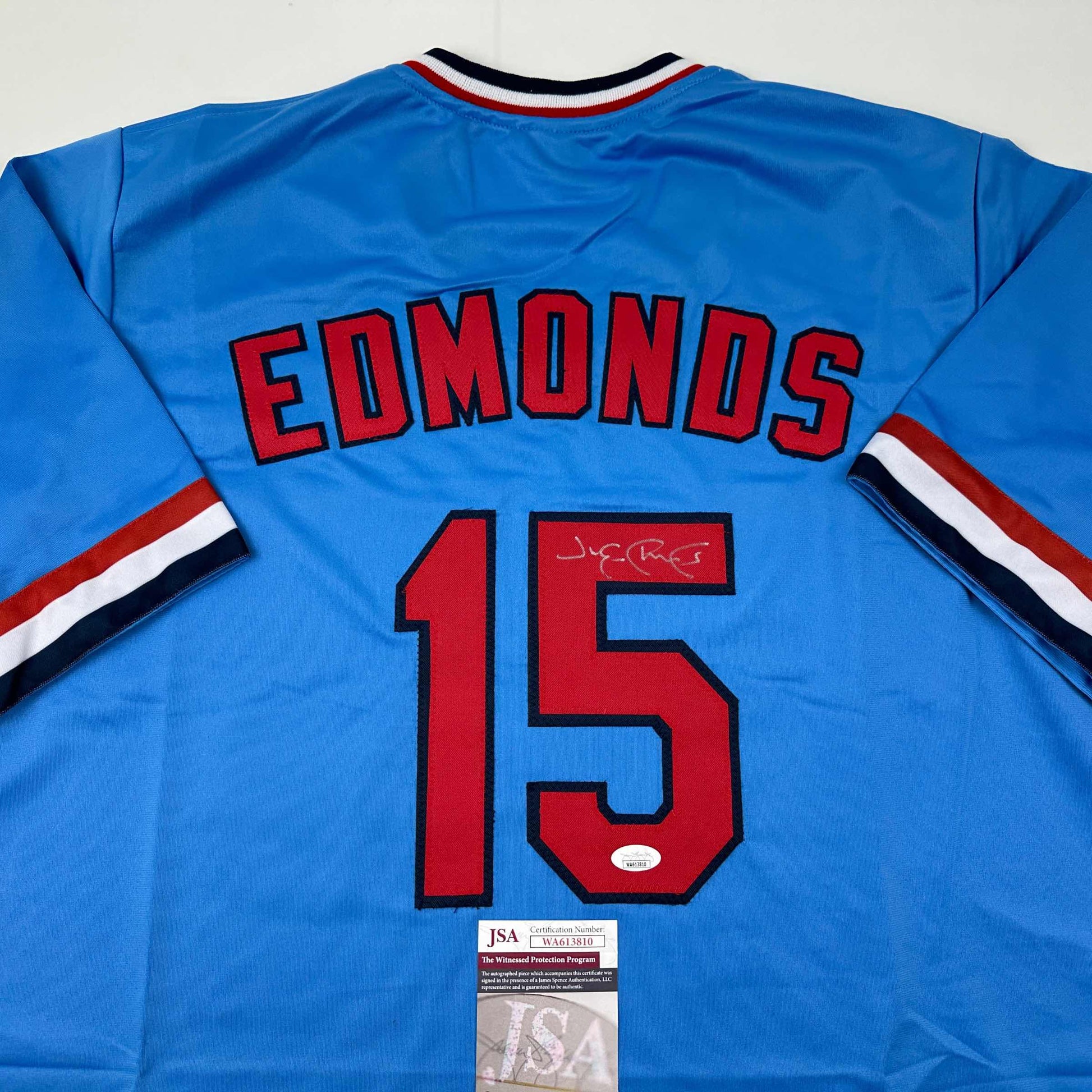 Autographed/Signed Jim Edmonds St. Louis Blue Baseball Jersey JSA COA