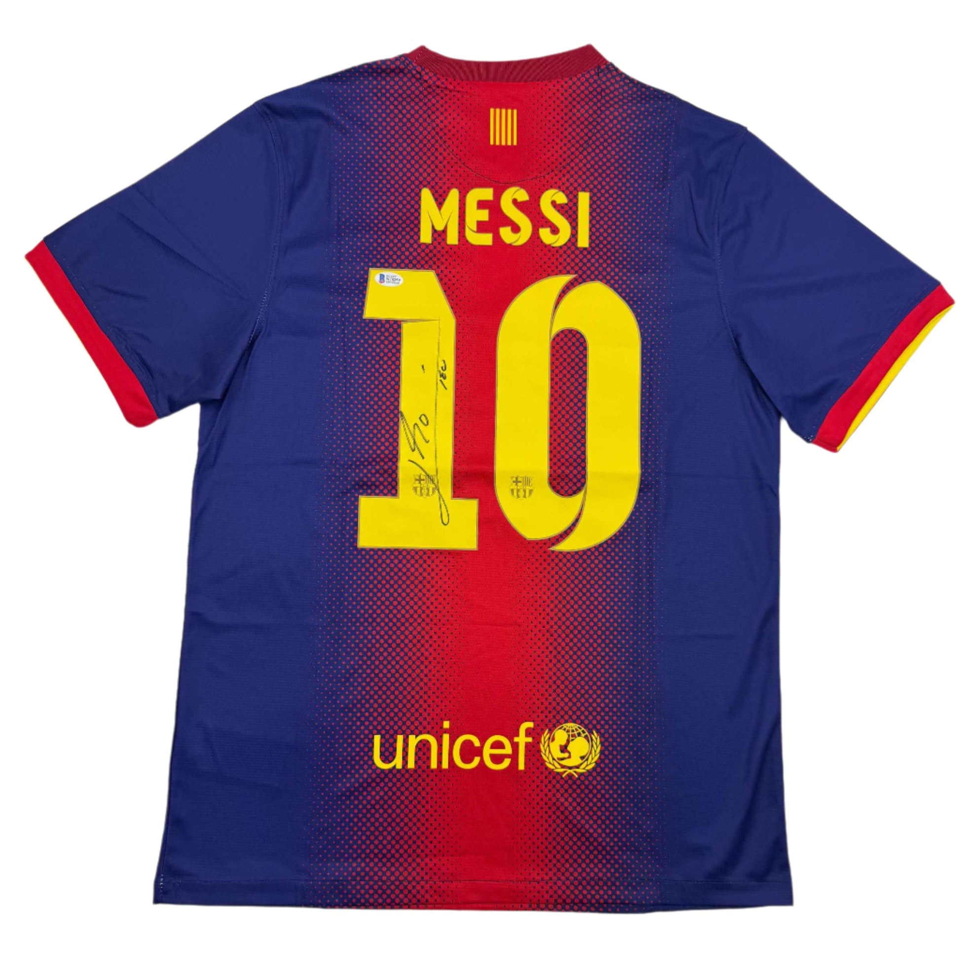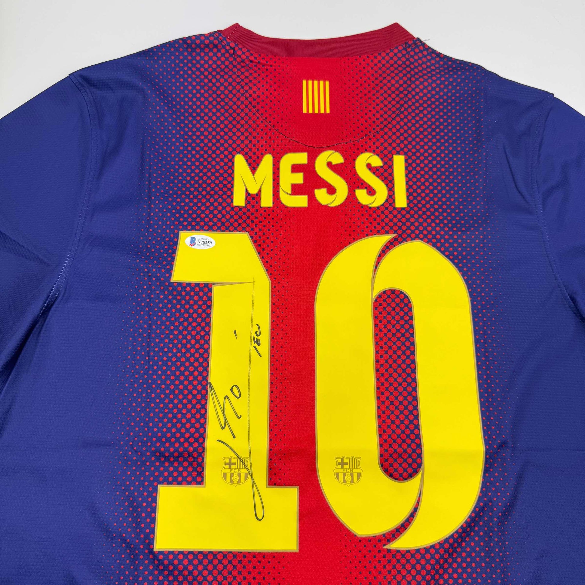 Autographed/Signed Lionel Leo Messi FC Barcelona Soccer Jersey Beckett BAS COA