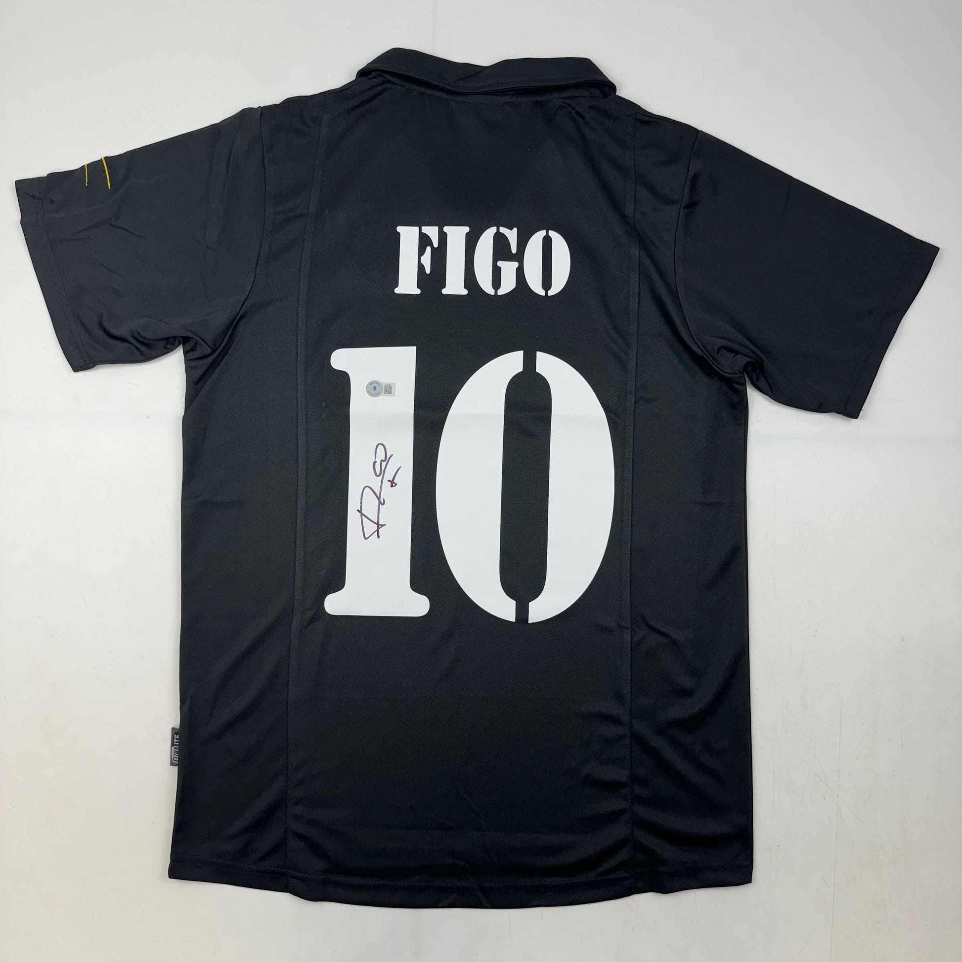 Autographed/Signed Luis Figo Real Madrid Black Soccer Jersey Beckett BAS COA