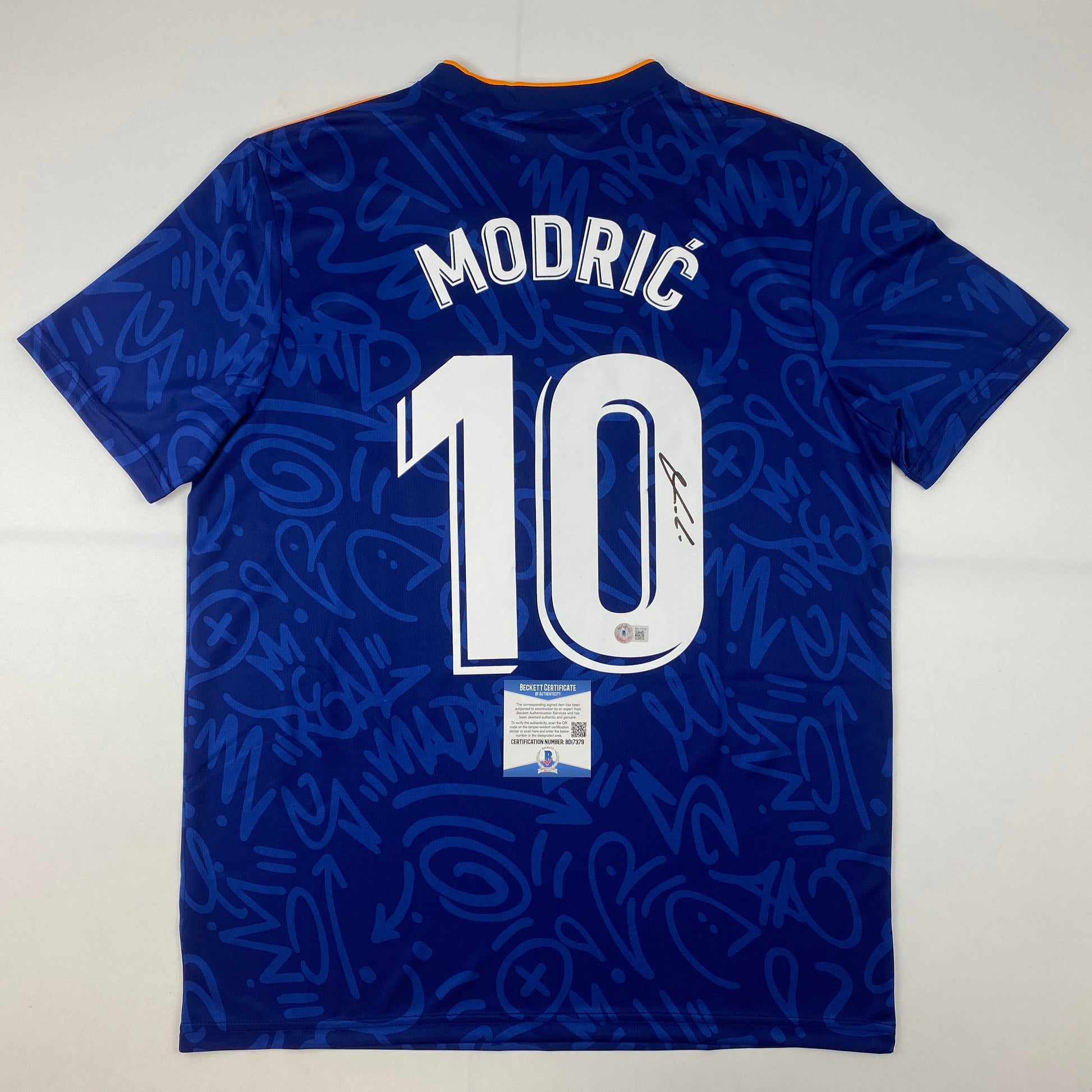 Autographed/Signed Luka Modric Real Madrid Blue Soccer Jersey Beckett BAS COA