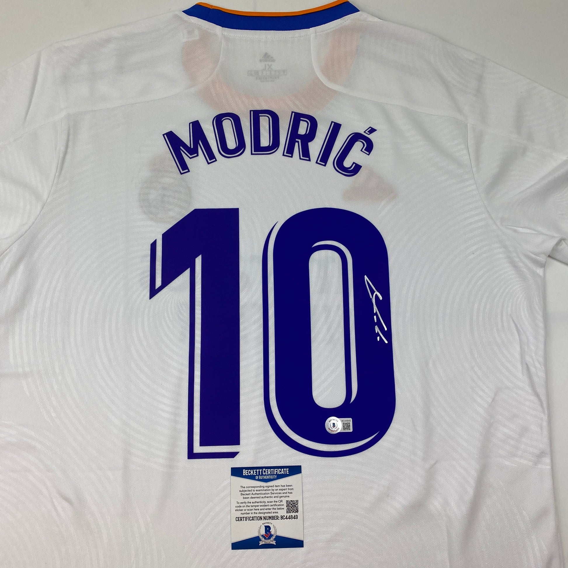 Autographed/Signed Luka Modric Real Madrid White Soccer Jersey Beckett BAS COA