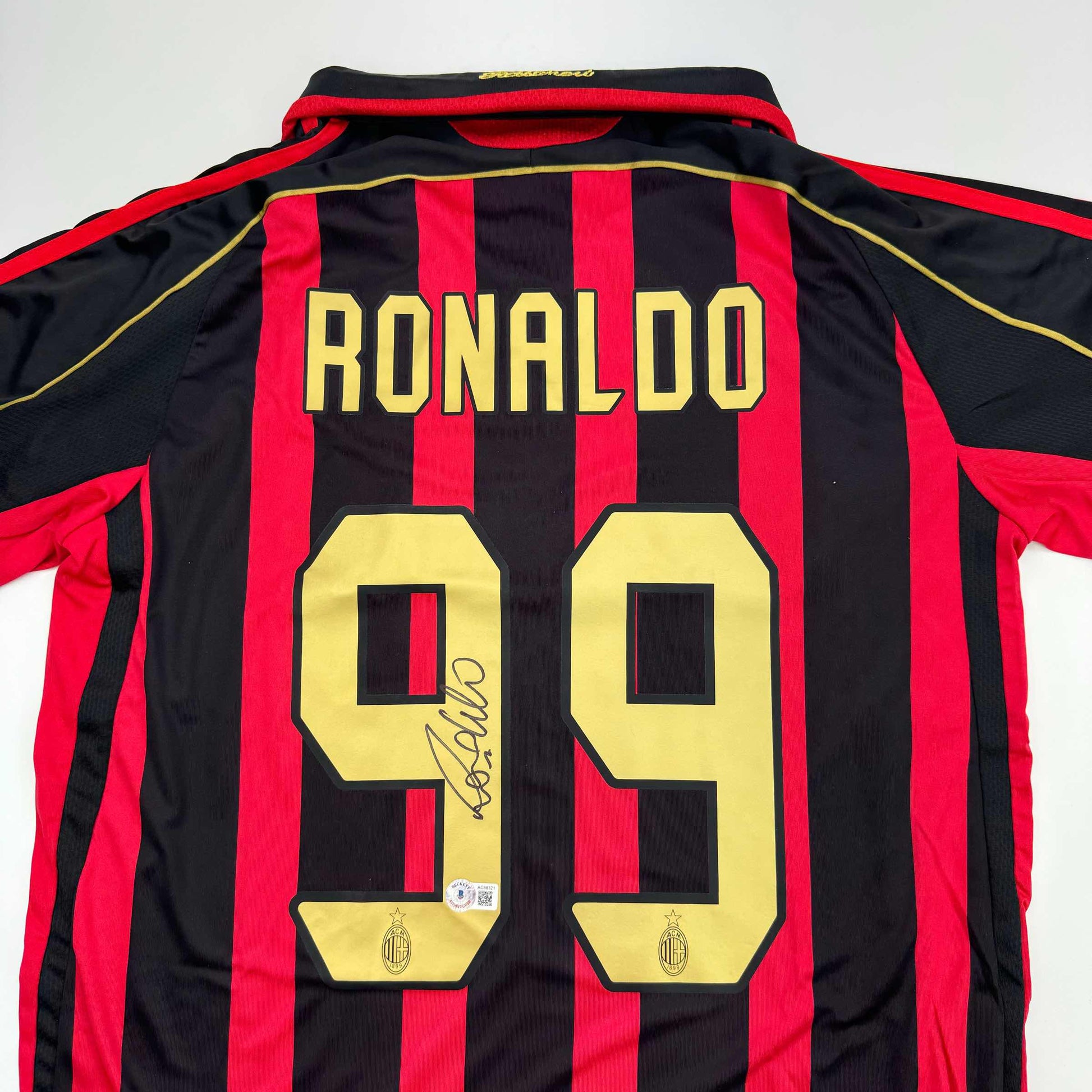 Autographed/Signed Ricardo Ronaldo Nazario AC Milan Black/Red Soccer Futbol Jersey Beckett BAS COA