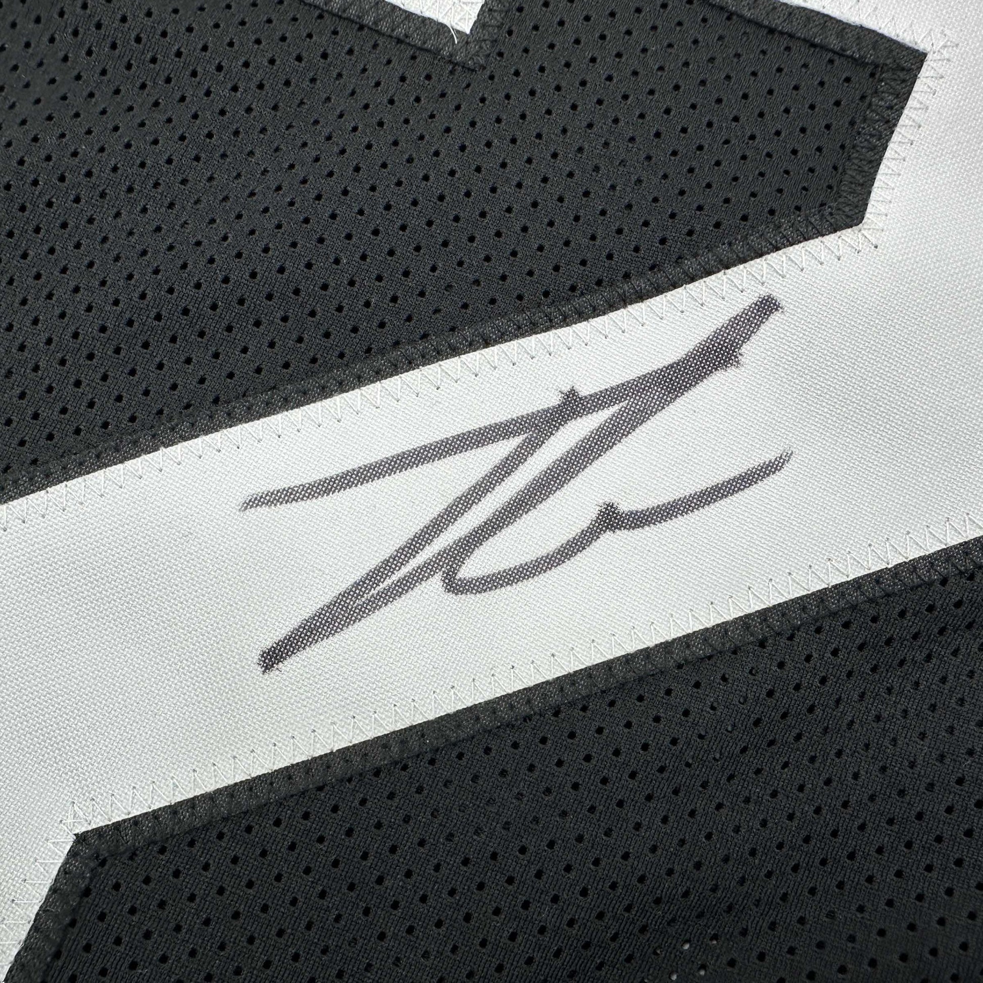 Jersey has no brand names or logos. This is a custom jersey and was not manufactured by or in any manner associated with any professional sports league or manufacturer. This custom jersey carries no professional sports league designation. The item is intended to be an autographed collectible. The custom jersey displays the name and number of the player. This item in no way is affiliated with or connected to any professional sports organization. Size is XL.