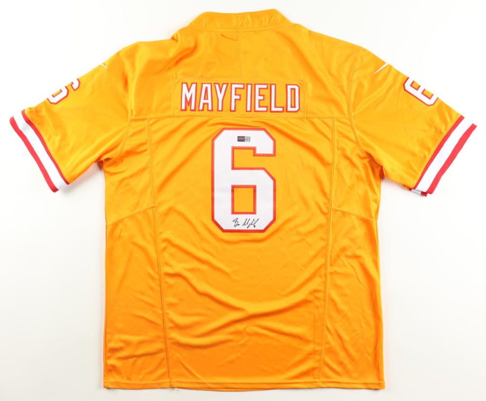 Celebrate your passion for football with this Baker Mayfield Signed Buccaneers Jersey (PIA) Tampa Bay Buccaneers, a must-have for any dedicated fan or collector. Crafted by Nike, this size XL jersey features everything sewn on for a premium, authentic look and feel, ensuring durability and comfort whether you're wearing it to the game or displaying it as part of your collection.