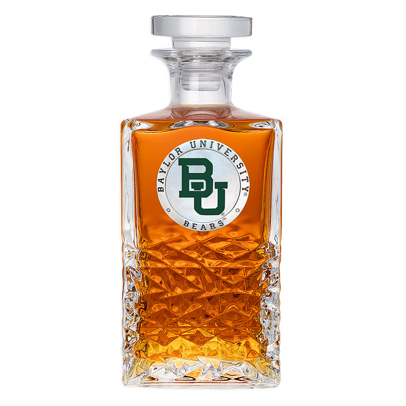 This 25 ounce glass decanter is embellished with a fine pewter casting. It is a great match with two Double Old Fashioned glasses. A great addition to any home bar! Made in USA.