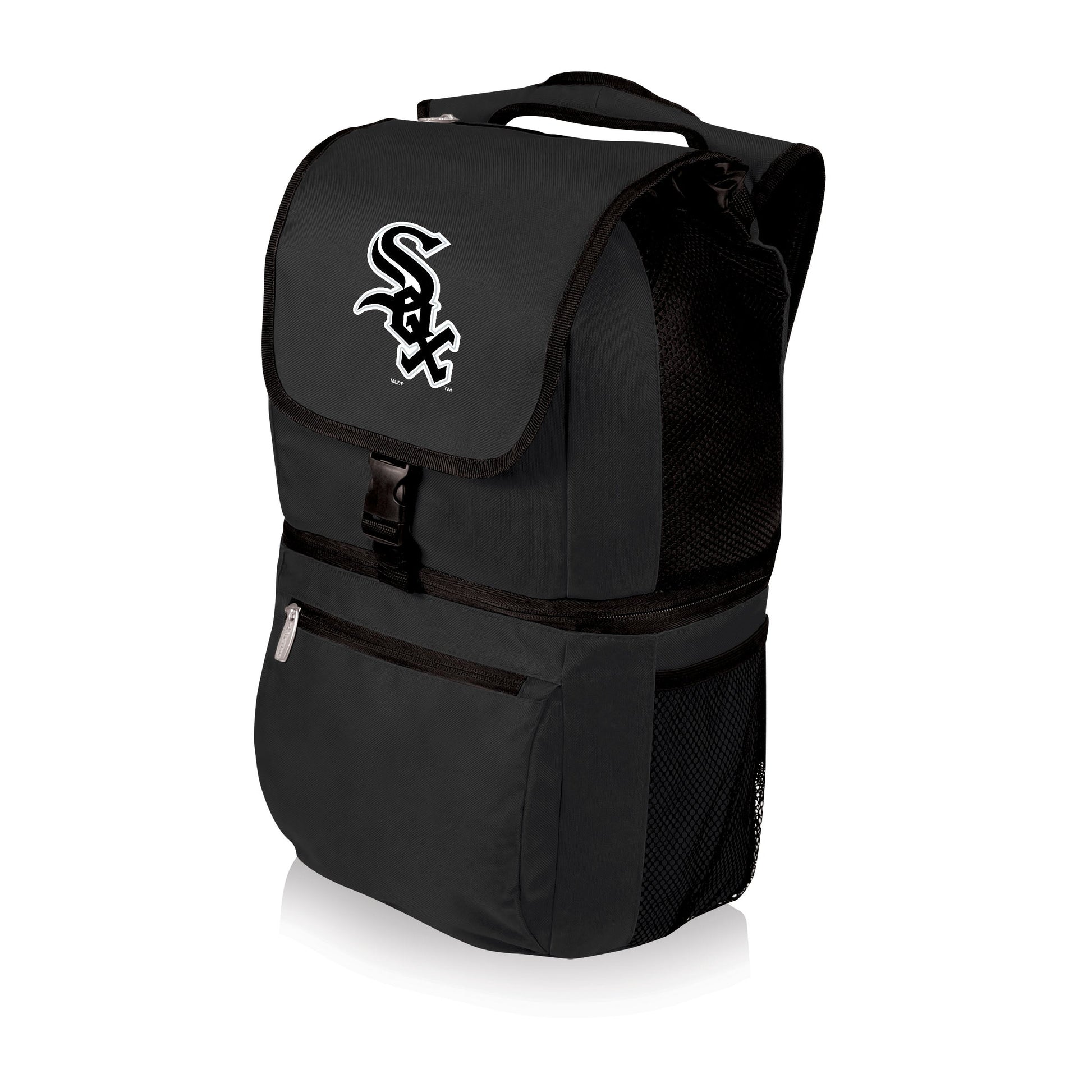 The Chicago White Sox Zuma Backpack Cooler doesn't just look “cooler” than those clunky ice chests, it’s also a roomy hiking backpack with two separate sections for a picnic and for your other essentials. Open up and say, "Ahhhh-some," with this travel cooler backpack, a stylish and lightweight ThermoGuard-insulated cooler backpack with a 20-can capacity and an upper mesh section to dry out your boardshorts. This picnic cooler bag also features two large exterior zipper pockets, two easy-access external beverage pockets, and air mesh shoulder straps make it easy to hike to that fabled camping beach. The Zuma is the perfect insulated lunch box for fishing, tailgating, hikes, picnics, heck it's even great as a work lunch bag - frankly, this picnic backpack simply belongs on your next adventure.