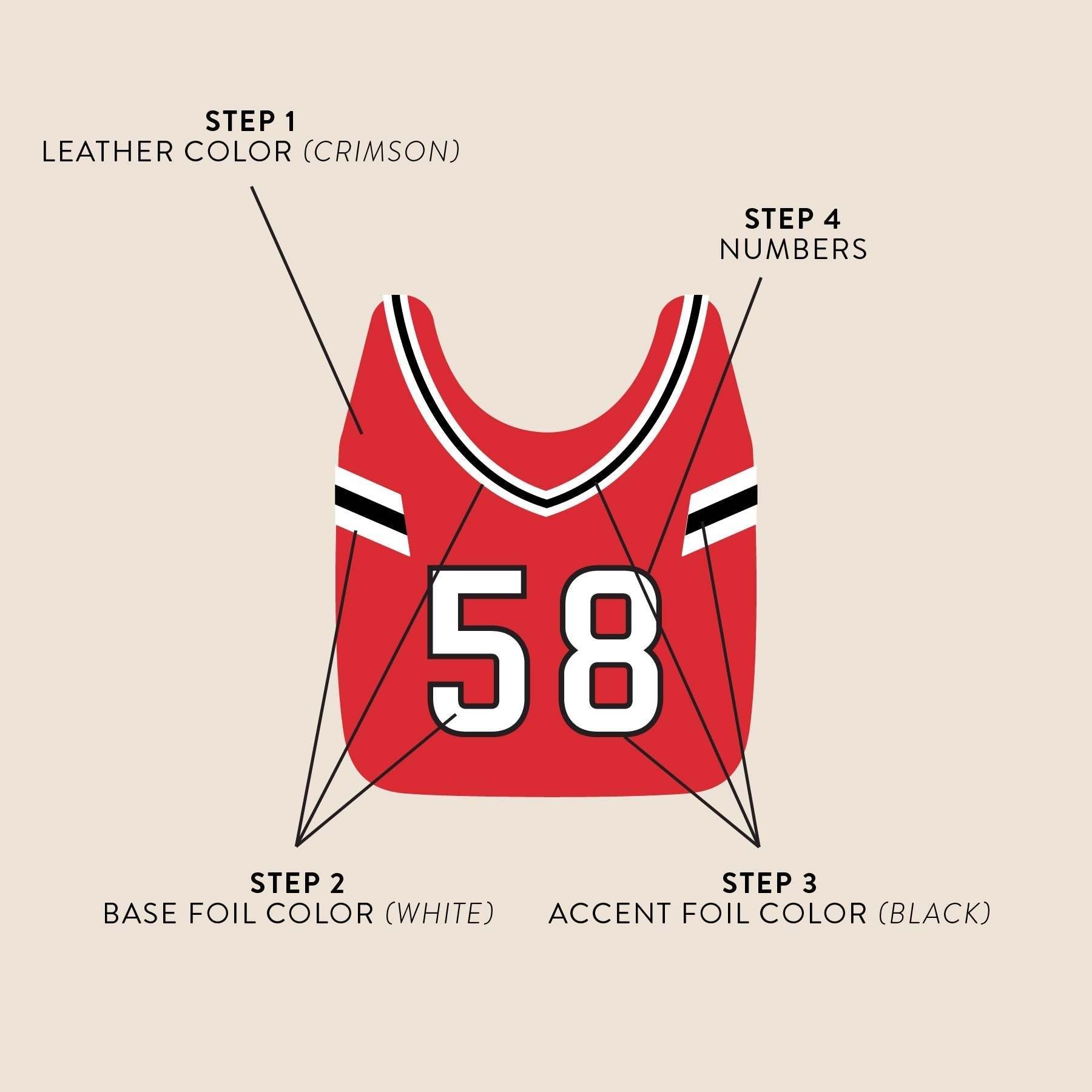Please follow the steps on the graphics provided to ensure your custom jerseys will be made correctly. If you have questions, please reach out to info@nickelandsuede.com. You can send an inspiration photo for more design help.