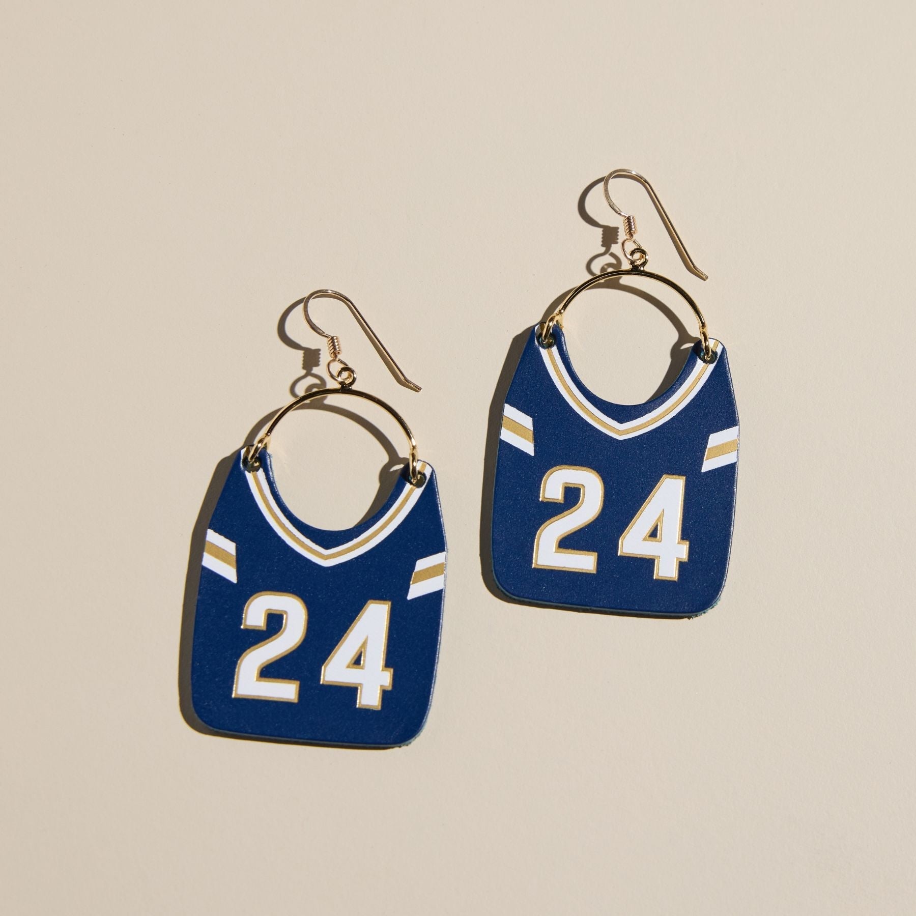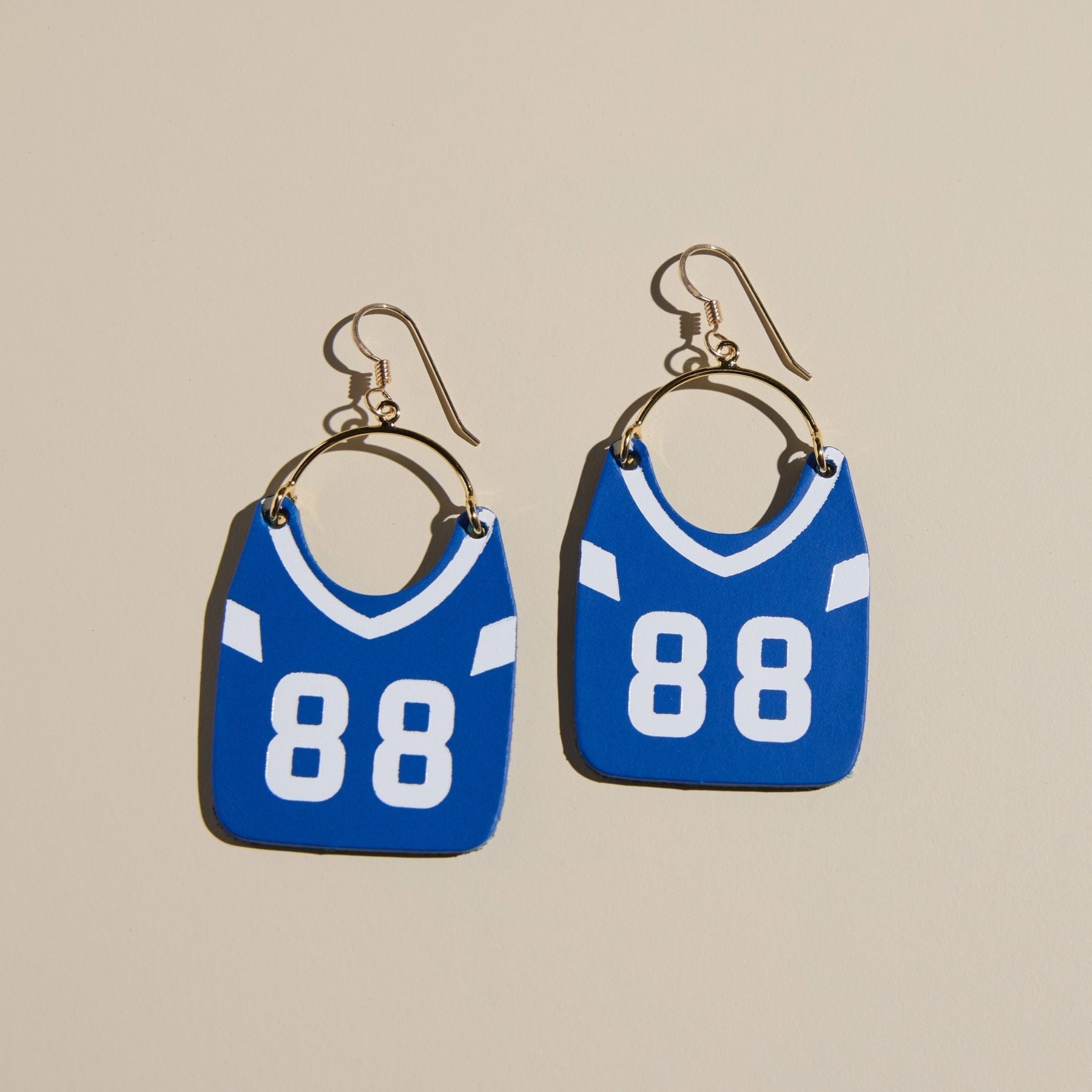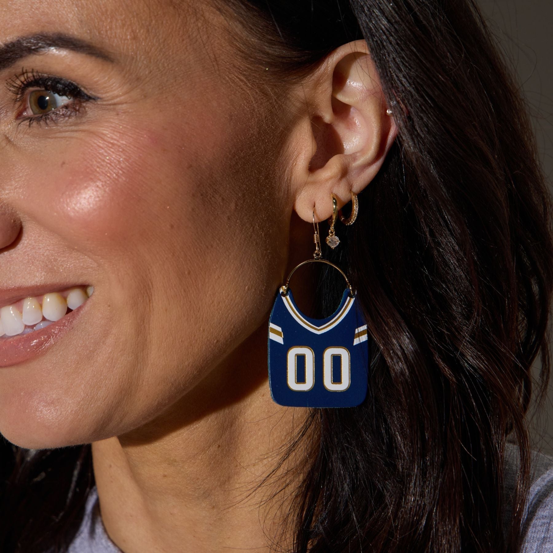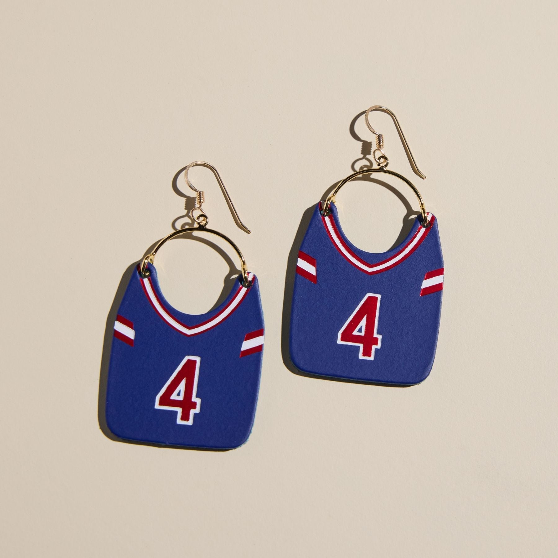 Elevate your game day look with our Custom Football Jersey Earrings. Be the biggest fan, while looking cute and chic on game day. These unique jersey-shaped earrings are designed to honor your favorite team. This earring is perfect for showing off your team spirit in style. Made from premium Italian leather- these lightweight earrings are hand-embossed in Kansas City.