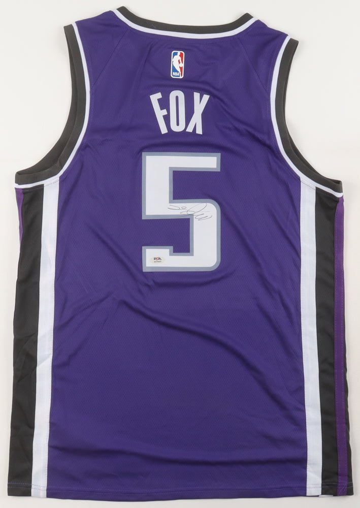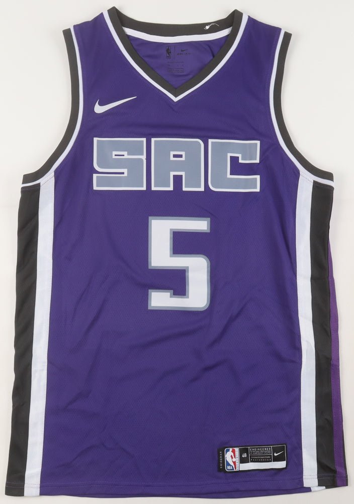 Nike jersey with everything sewn on, size L. Hand-signed by De'Aaron Fox.