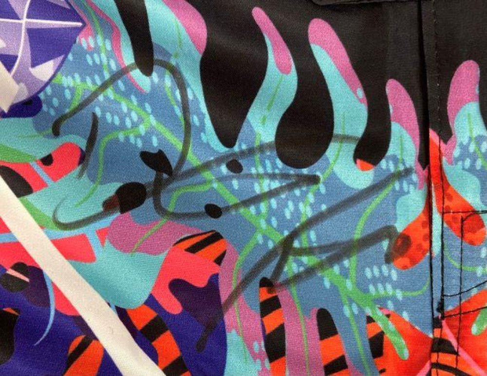 Custom MMA trunks, size XL, have been hand-signed by Dustin Poirier.