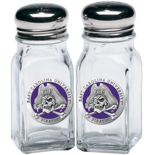 This is a set of salt & pepper shakers with a fine pewter logo medallion bonded to the side. Made in USA.