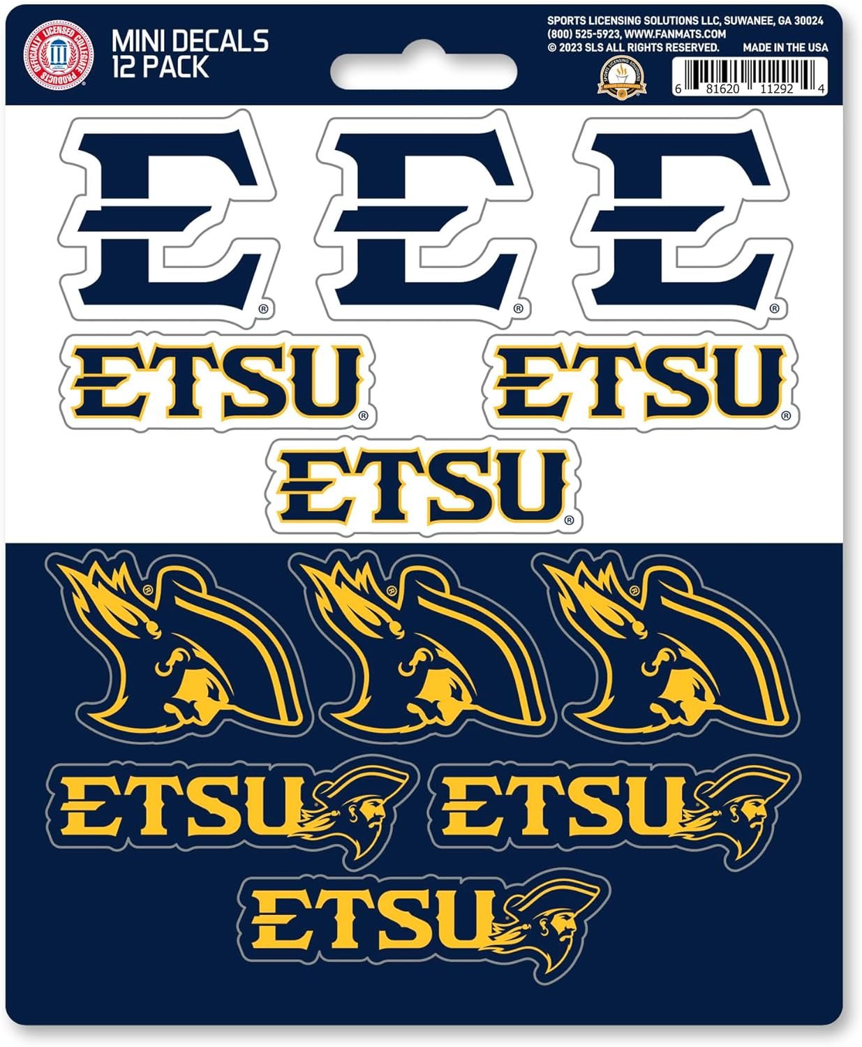 East Tennessee State University Buccaneers 12-Piece Mini Decal Sticker Set, 5x6 Inch Sheet, Gift for football fans for any hard surfaces around home, automotive, personal items