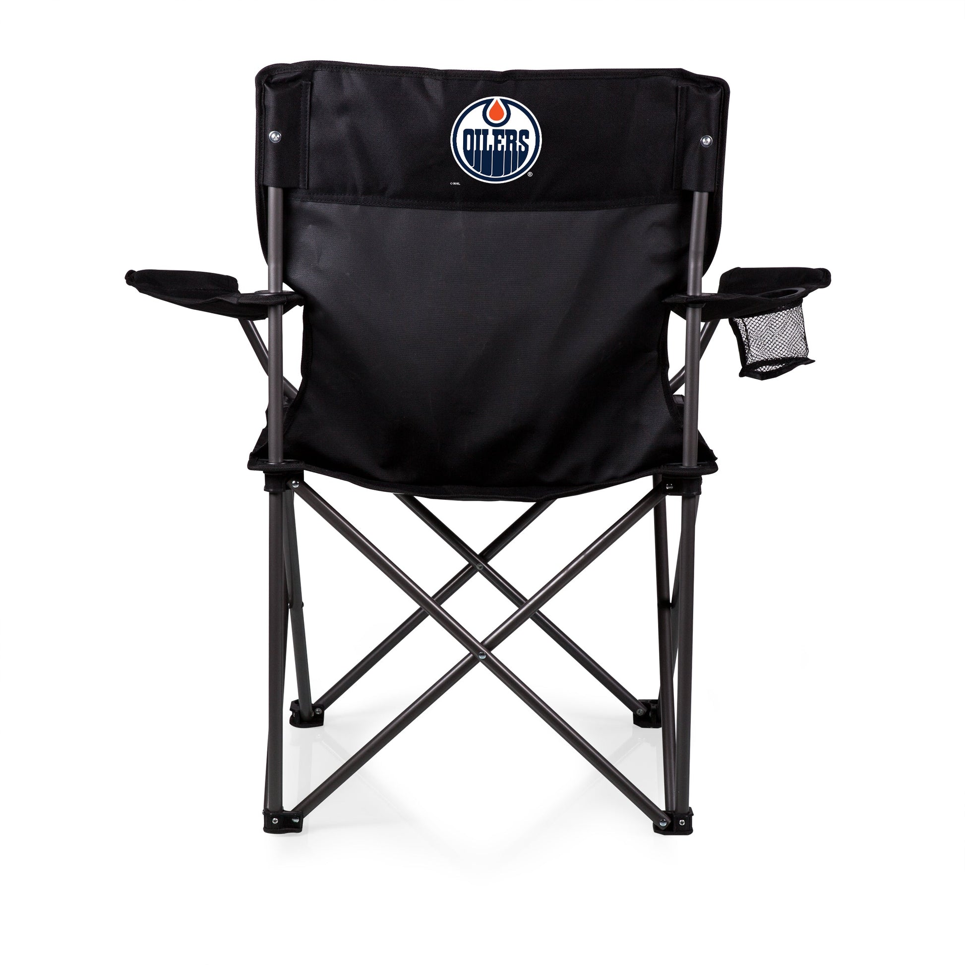 Spend more time sun-gazing, star-gazing, and straight up relaxing with the no-fuss Edmonton Oilers PTZ Camp Chair, your go-to portable chair with a simple and quick set-up design. This folding beach chair features a natural recline and a mesh drink holder in the right armrest for a deluxe seat in the great outdoors. With a sturdy frame that folds into a drawstring carrying bag with shoulder strap, this camping chair transports to the park, beach, picnic, campsite, backyard and more with ease. Wherever you go, your trusty Edmonton Oilers PTZ Camp Chair can easily join in the fun and provide an ideal place to kick back and relax. This portable folding chair is a true chameleon - a lawn chair, a camping chair, a beach chair, or a good ol' sitting-on-your-porch-watching-the-world-go-by chair!
