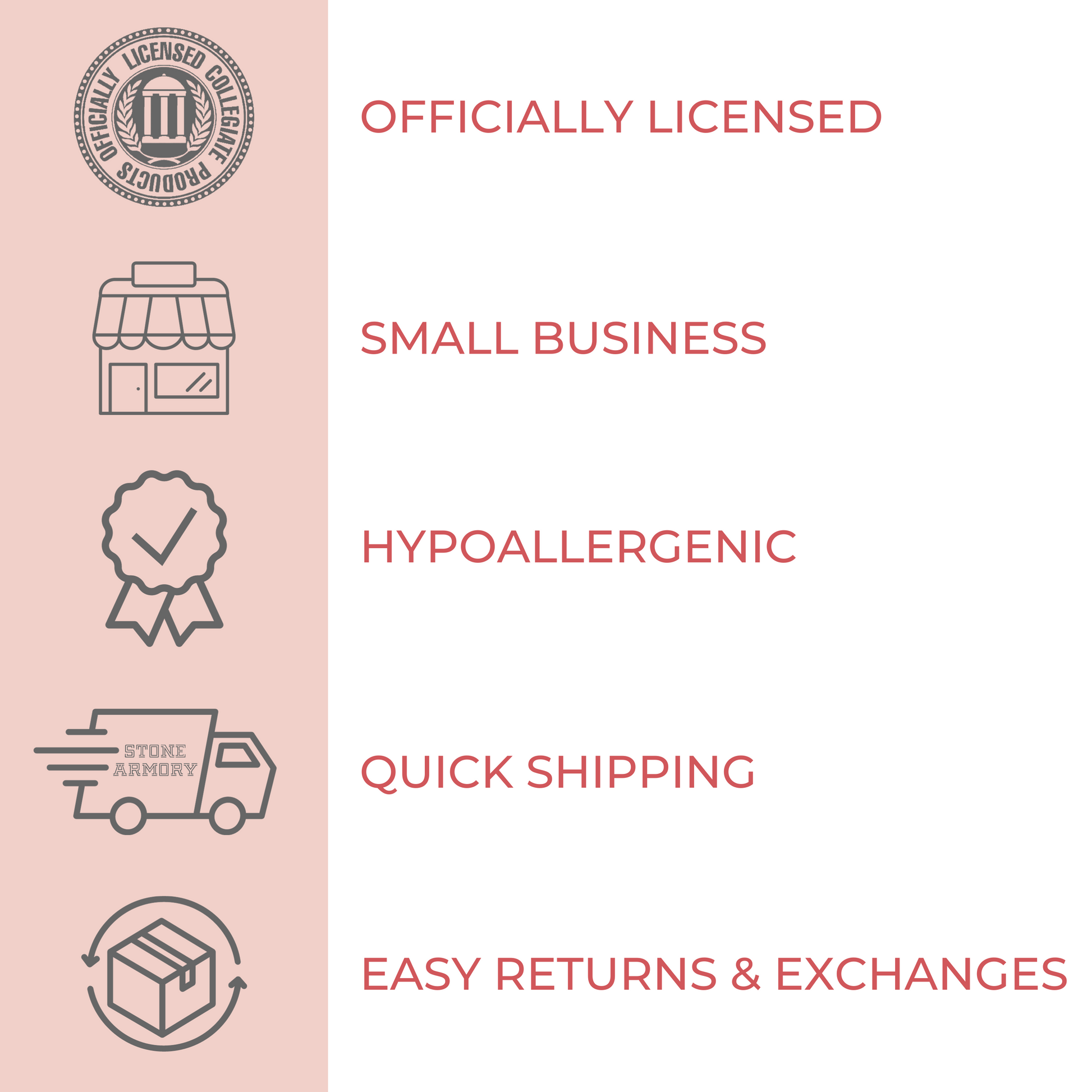 Stone Armory's Florida Gators Script stud earrings are here! Gear up for the game with our beautifully designed Florida Gators earrings! Wear them to your next tailgate or around town to show off your University of Florida pride. These stainless steel Florida earrings would also make the perfect Florida gift for your favorite Florida Gators fan! Stone Armory's Florida jewelry is made of stainless steel and carefully designed, making these NCAA Florida stud earrings the perfect gift to celebrate Florida graduation, birthdays, Mother's Day, first day of school, the first game, or for everyday fan wear. Thank you for supporting our small business!