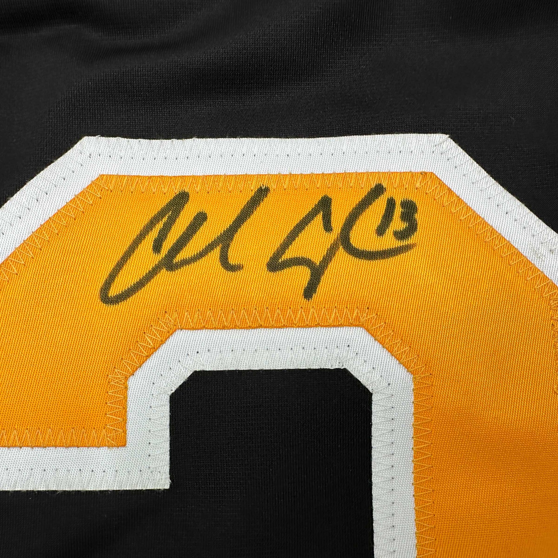 Framed Autographed/Signed Charlie Coyle 35x39 Boston Black Hockey Jersey JSA COA