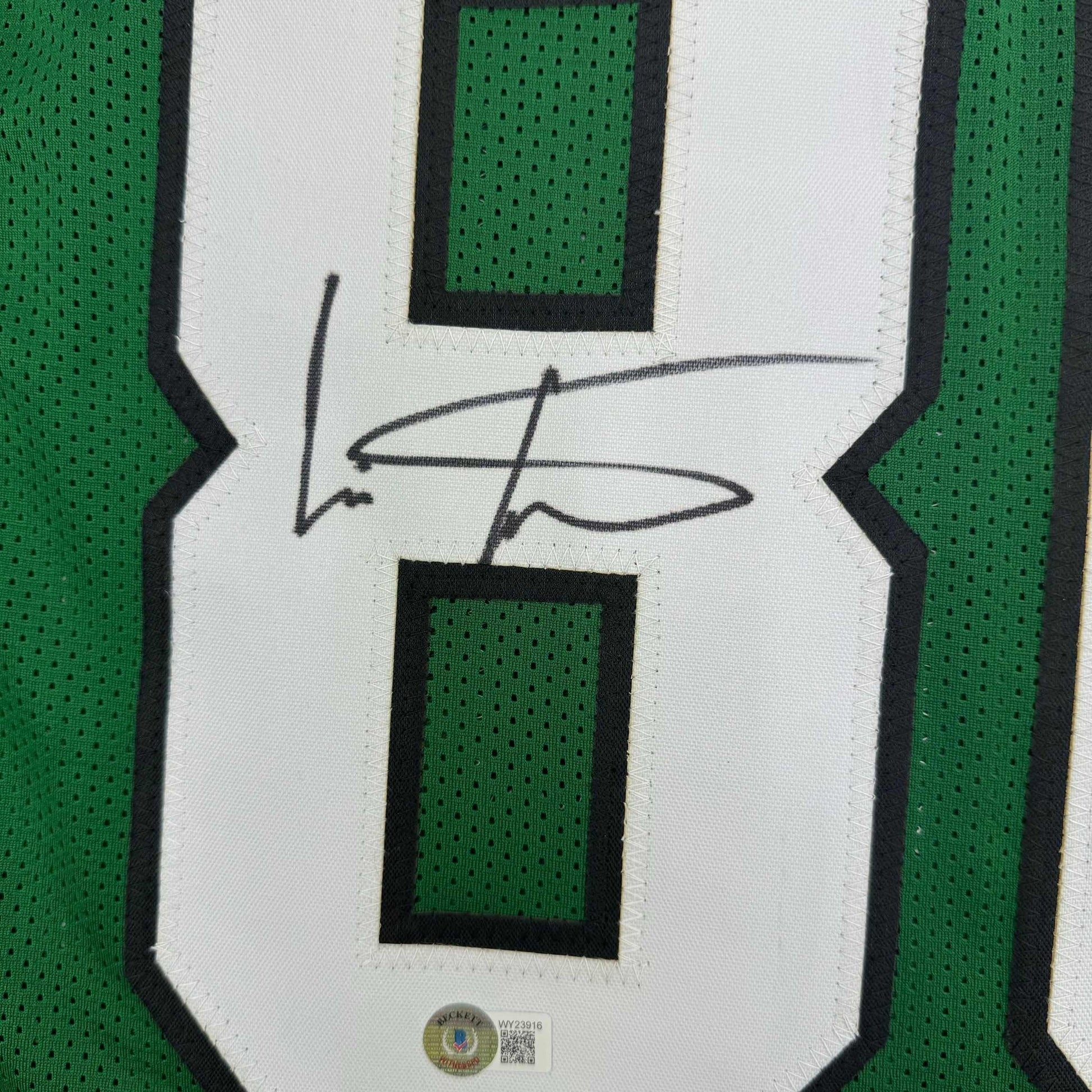 Framed Autographed/Signed Cris Carter 35x39 Philadelphia Kelly Green Football Jersey Beckett BAS COA