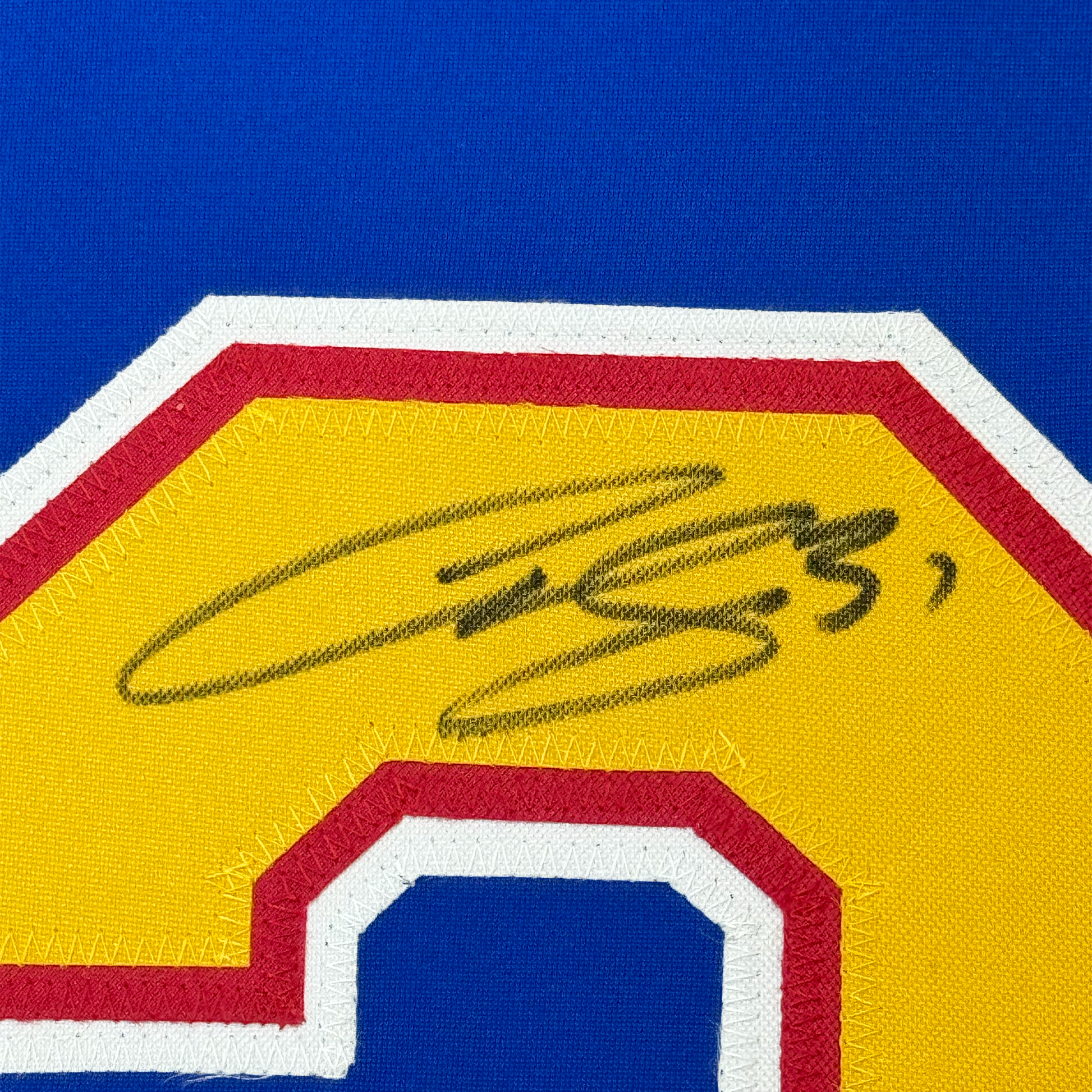 Framed Autographed/Signed Curtis Joseph 35x39 St. Louis Blue Hockey Jersey JSA COA