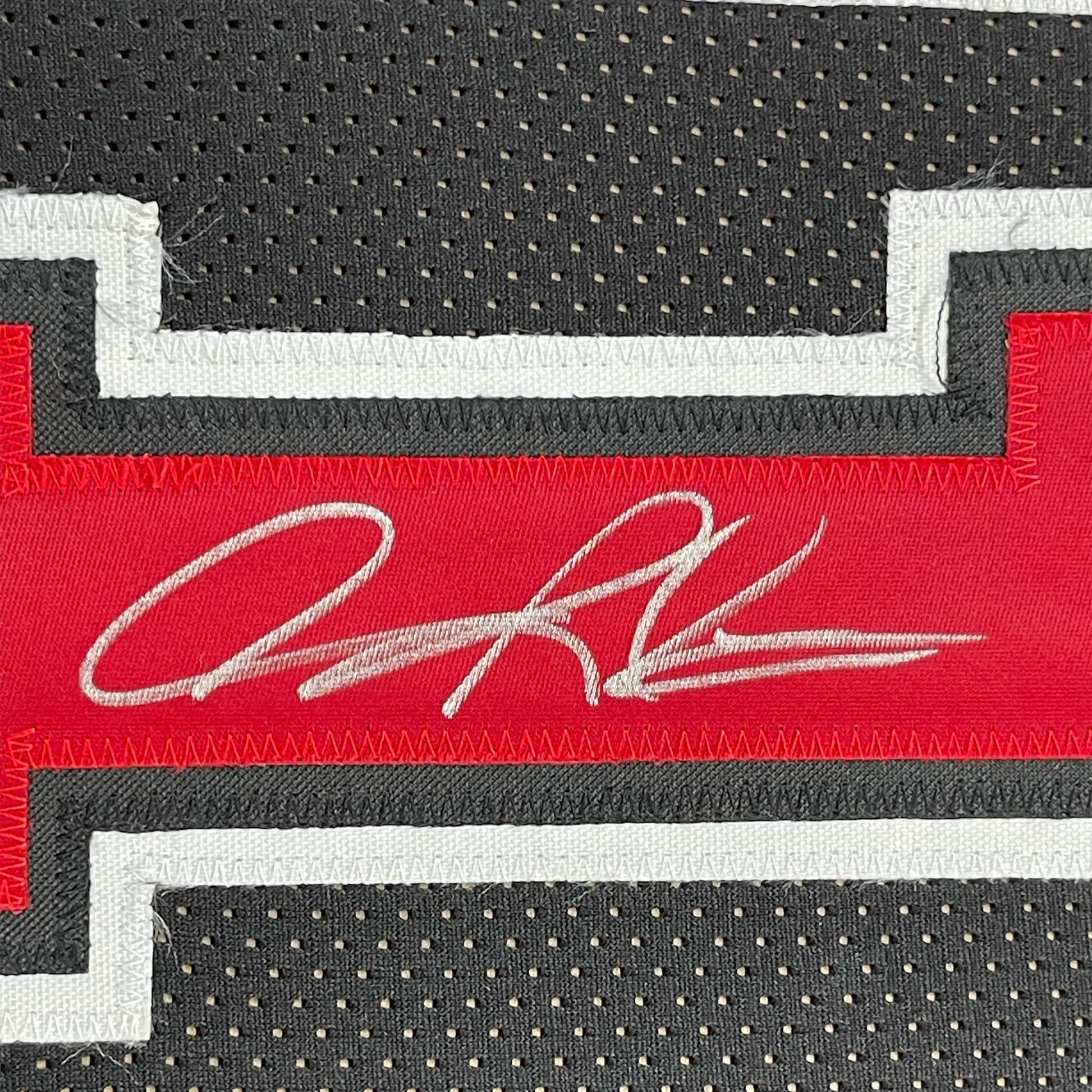 Framed Autographed/Signed Dennis Rodman 35x39 Chicago Black Basketball Jersey JSA COA