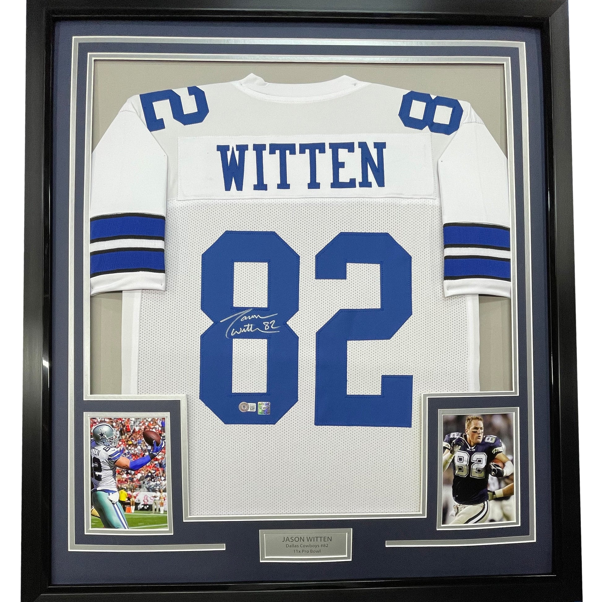 Framed Autographed/Signed Jason Witten 35x39 Dallas White Football Jersey JSA COA