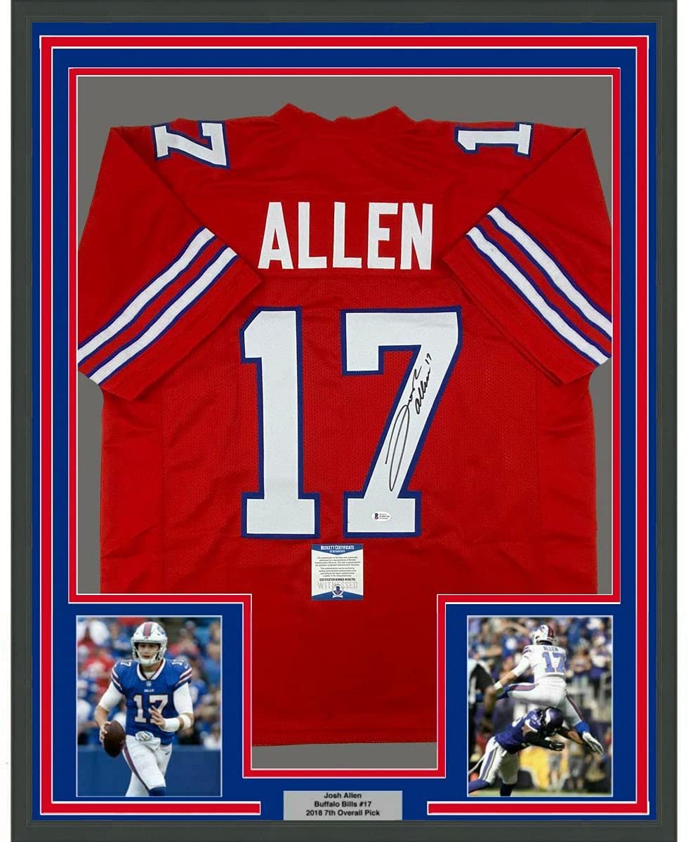 Framed Autographed/Signed Josh Allen 35x39 Buffalo Red Football Jersey Beckett BAS COA