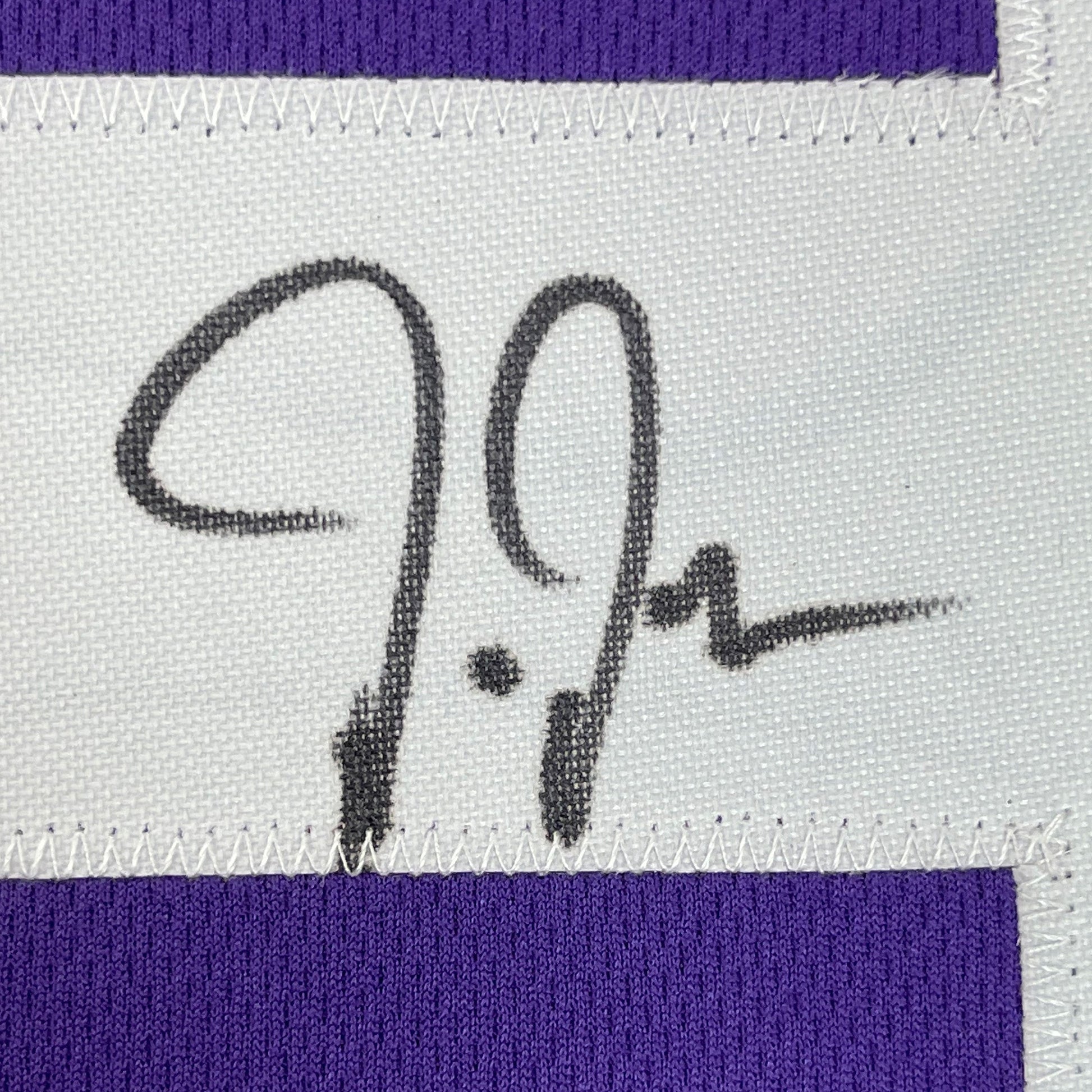 Framed Autographed/Signed Justin Jefferson 35x39 Minnesota Purple Football Jersey JSA COA