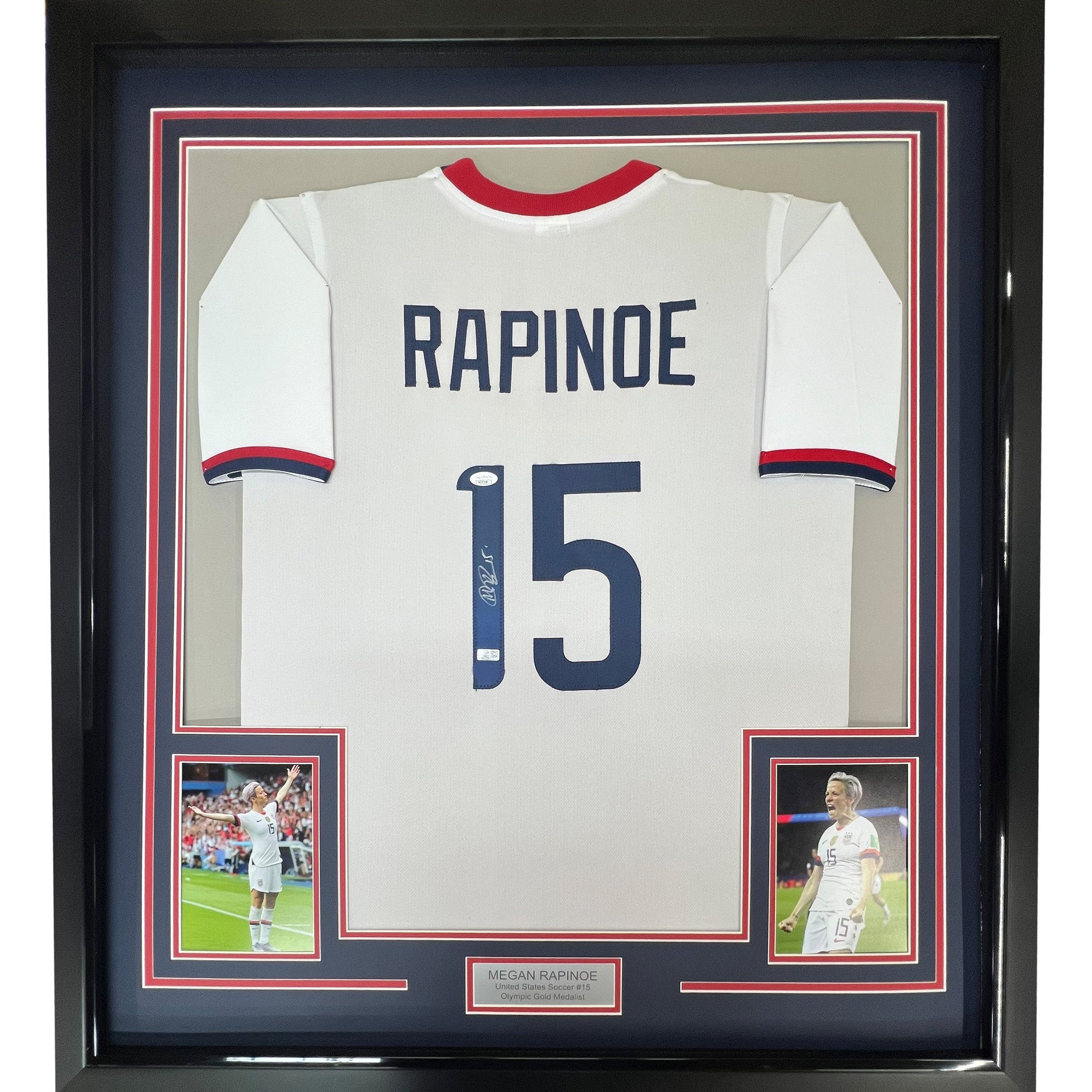Framed Autographed/Signed Megan Rapinoe 35x39 White Soccer Team USA United States World Cup Jersey JSA COA