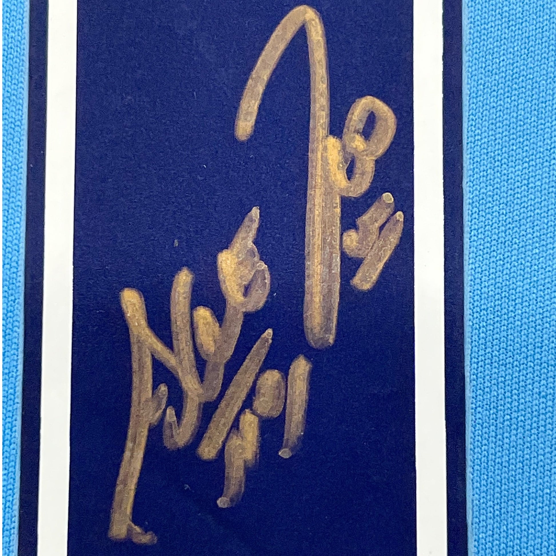 The item is professionally framed and matted with two 5x7 photos, measures 35x39 inches and is ready to be hung in your man cave! Photo and matting requests can be made.