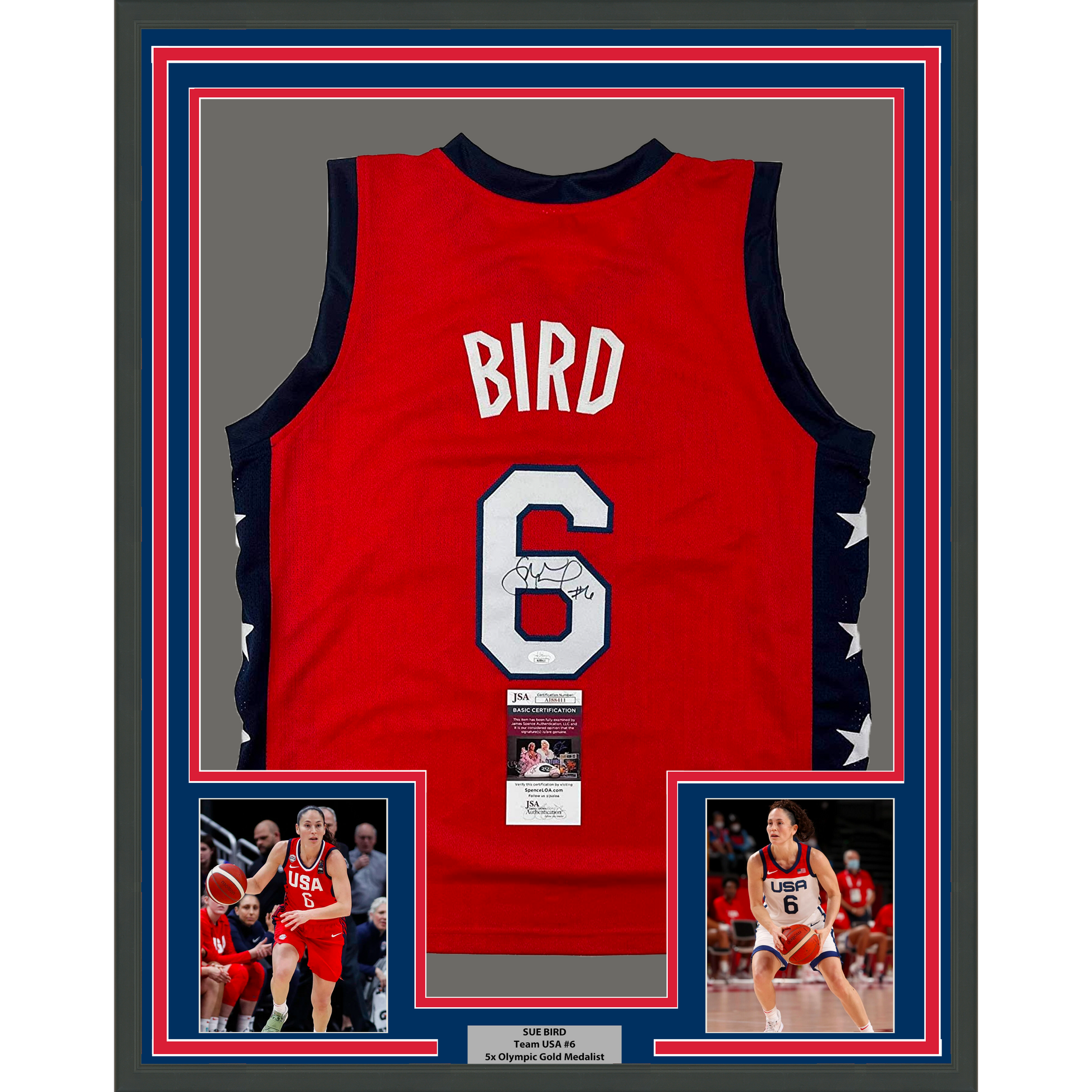 Framed Autographed/Signed Sue Bird 35x39 USA Olympics Red Basketball Jersey JSA COA