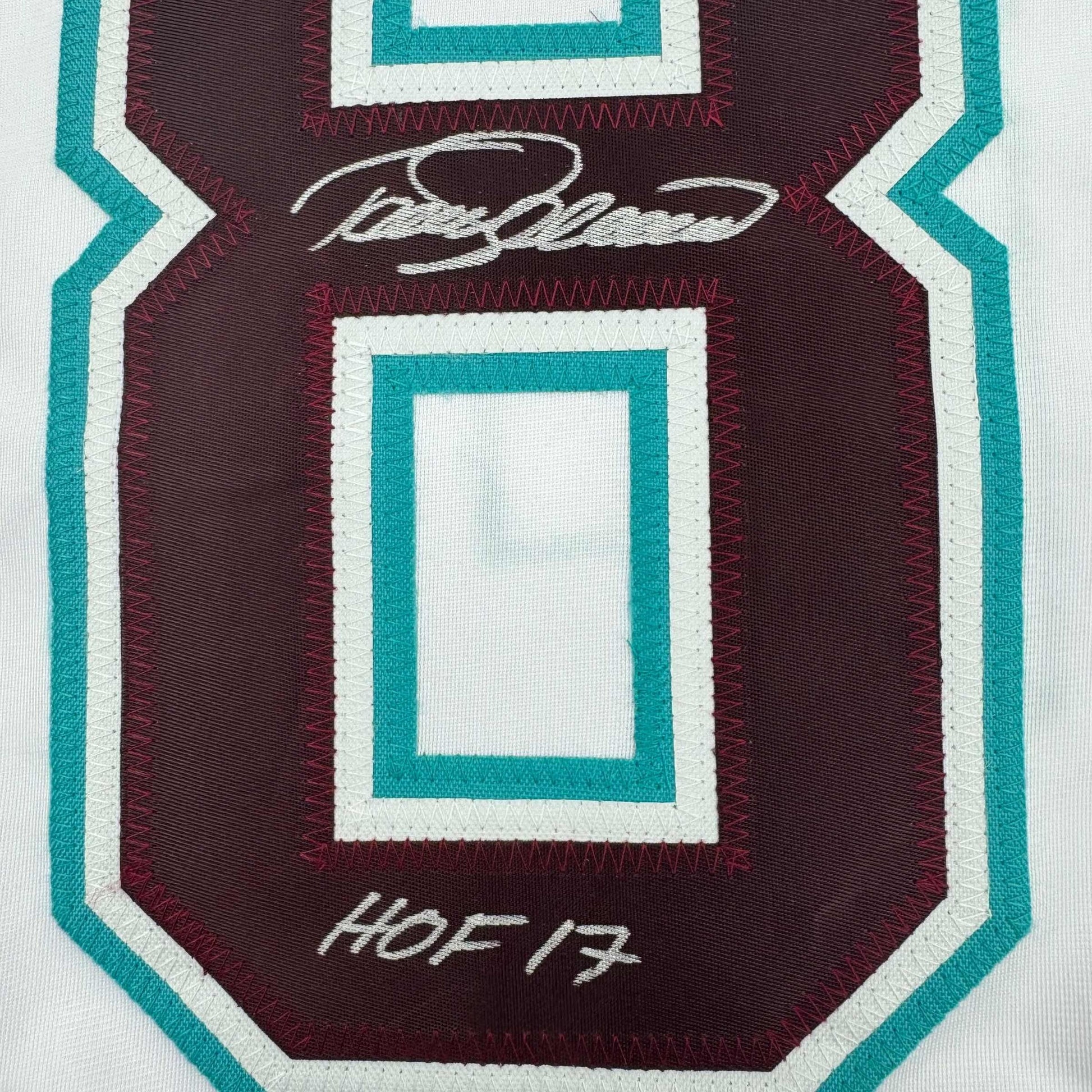 Framed Autographed/Signed Teemu Selanne HOF 35x39 Anaheim White Retro Hockey Jersey JSA COA