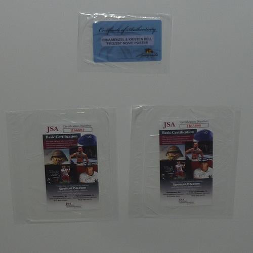 Get your hands on this JSA authenticated Frozen full-size movie poster, featuring the beloved stars Idina Menzel and Kristen Bell's autographs! Framed with deluxe materials, this poster is the perfect addition to any fan's collection. Bring the magic of the film into your home! Total frame dimensions are 34x44.