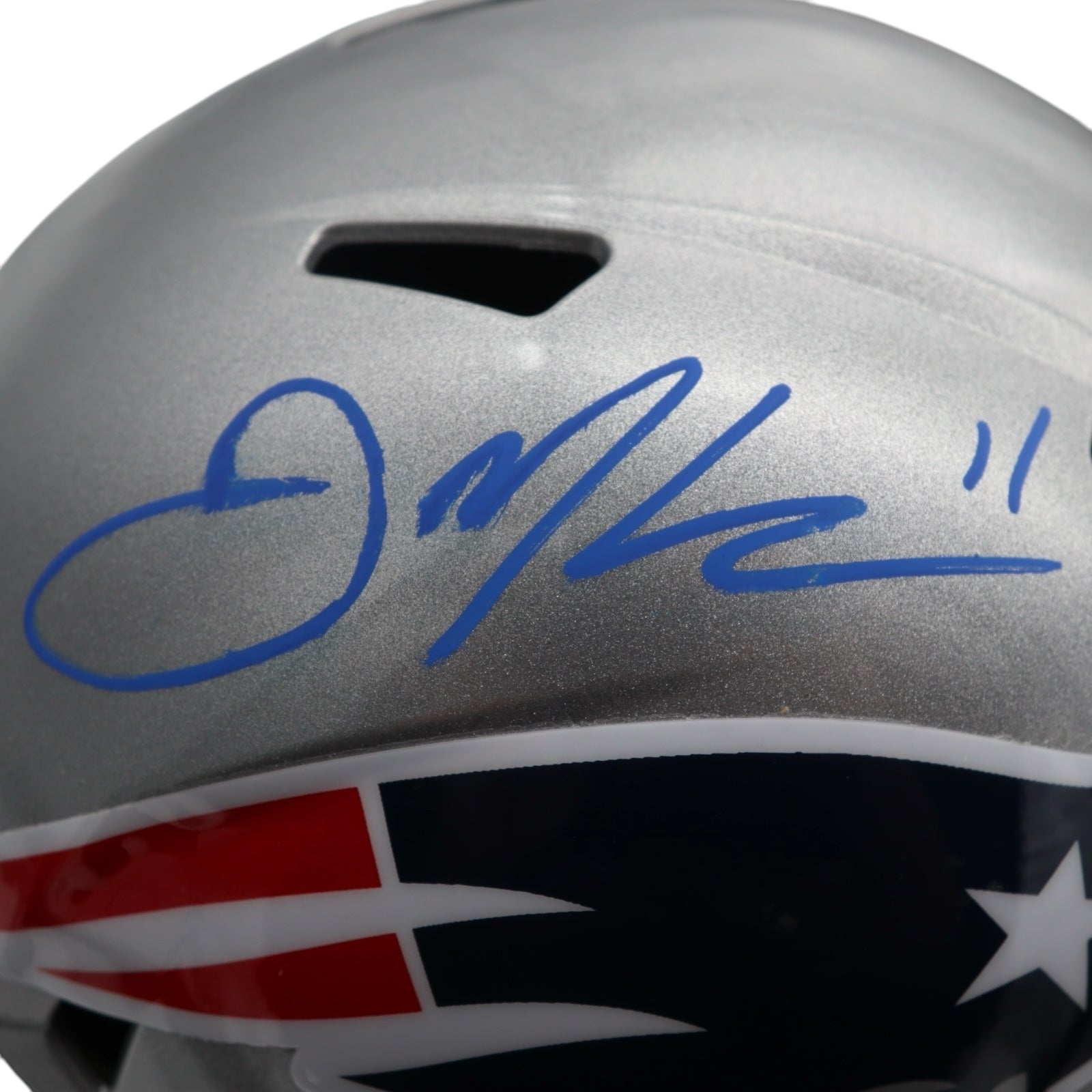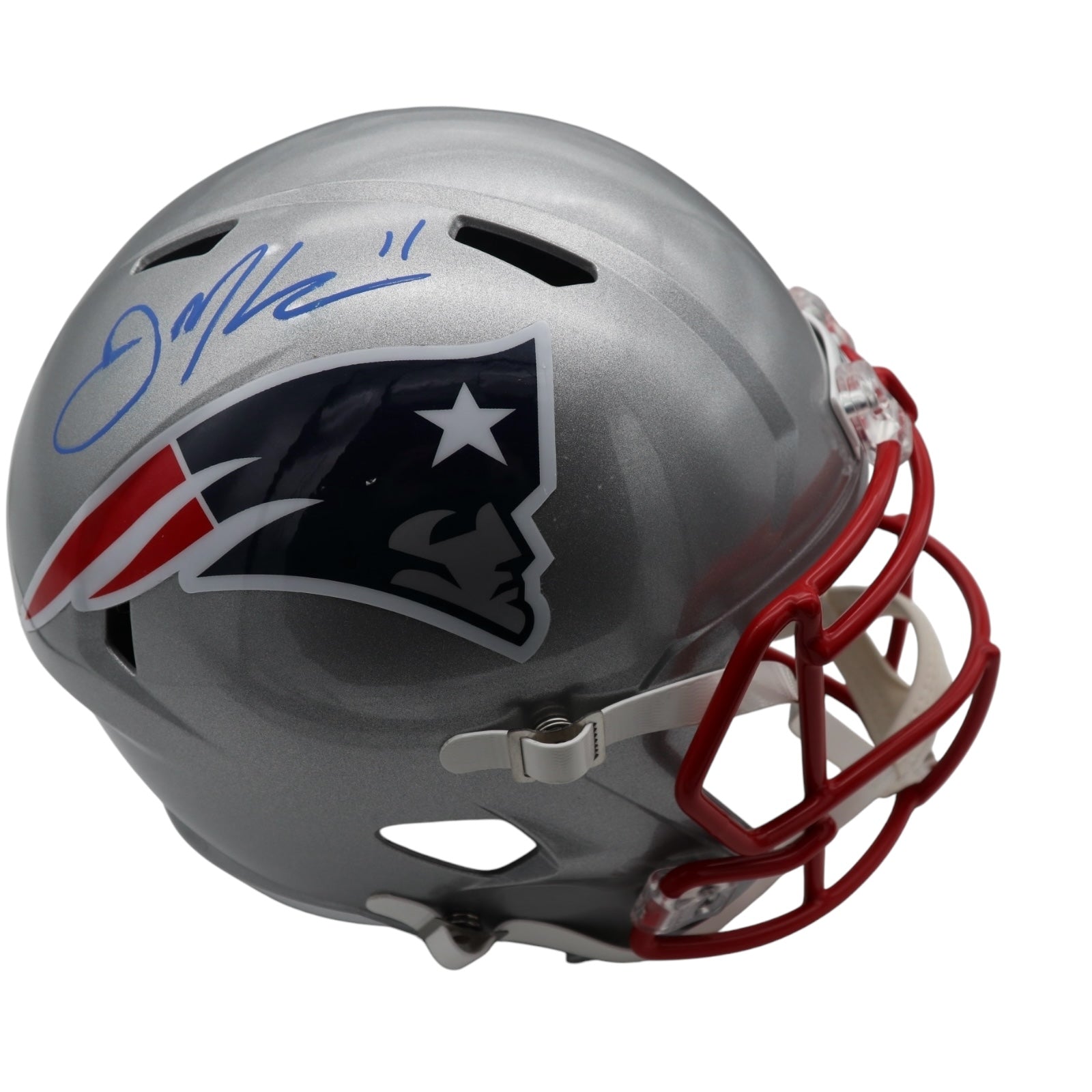 Own a piece of NFL history with this authentic Julian Edelman autographed New England Patriots full-size helmet! Showcase your team pride while adding an iconic and valuable collectible to your collection. Don't miss the opportunity to own this exciting piece of sports memorabilia!