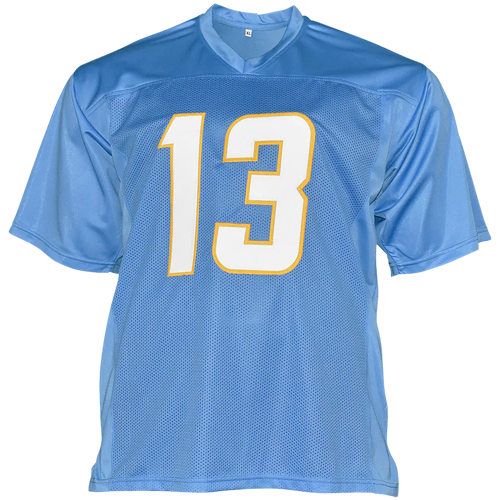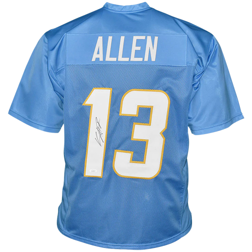 Showcase your support for the Los Angeles Chargers with this Keenan Allen autographed custom jersey! In striking powder blue, this jersey is a must-have for any fan. Hand-signed by the talented wide receiver, this Beckett certified jersey is a precious collectible that will add value and excitement to your sports memorabilia collection. Don't miss out on this opportunity to own a piece of NFL history!