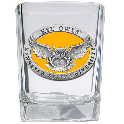 This 1.5 ounce square shot glass is highlighted with a fine pewter casting. Made in USA.