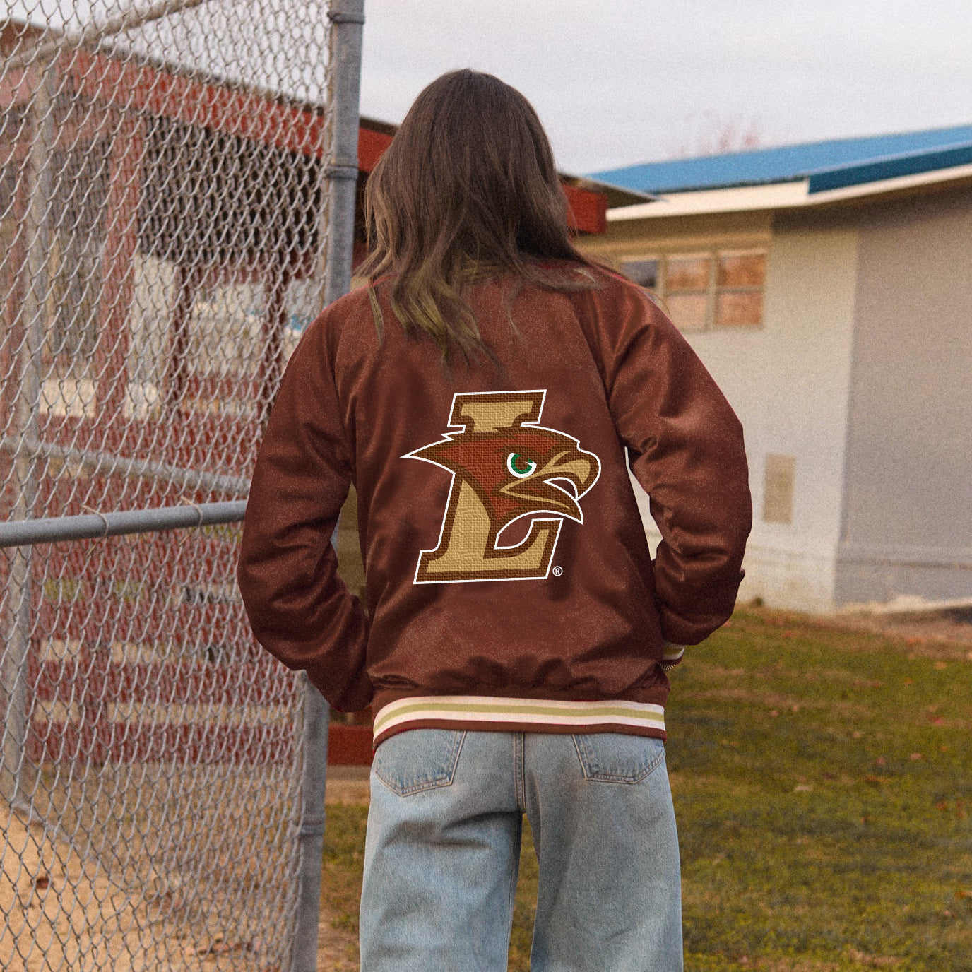 This iconic Lehigh satin bomber jacket with embroidered twill patches on the front and back is the perfect gift for him or her! Treat yourself to this one of a kind satin jacket that will be a closet staple for years to come.