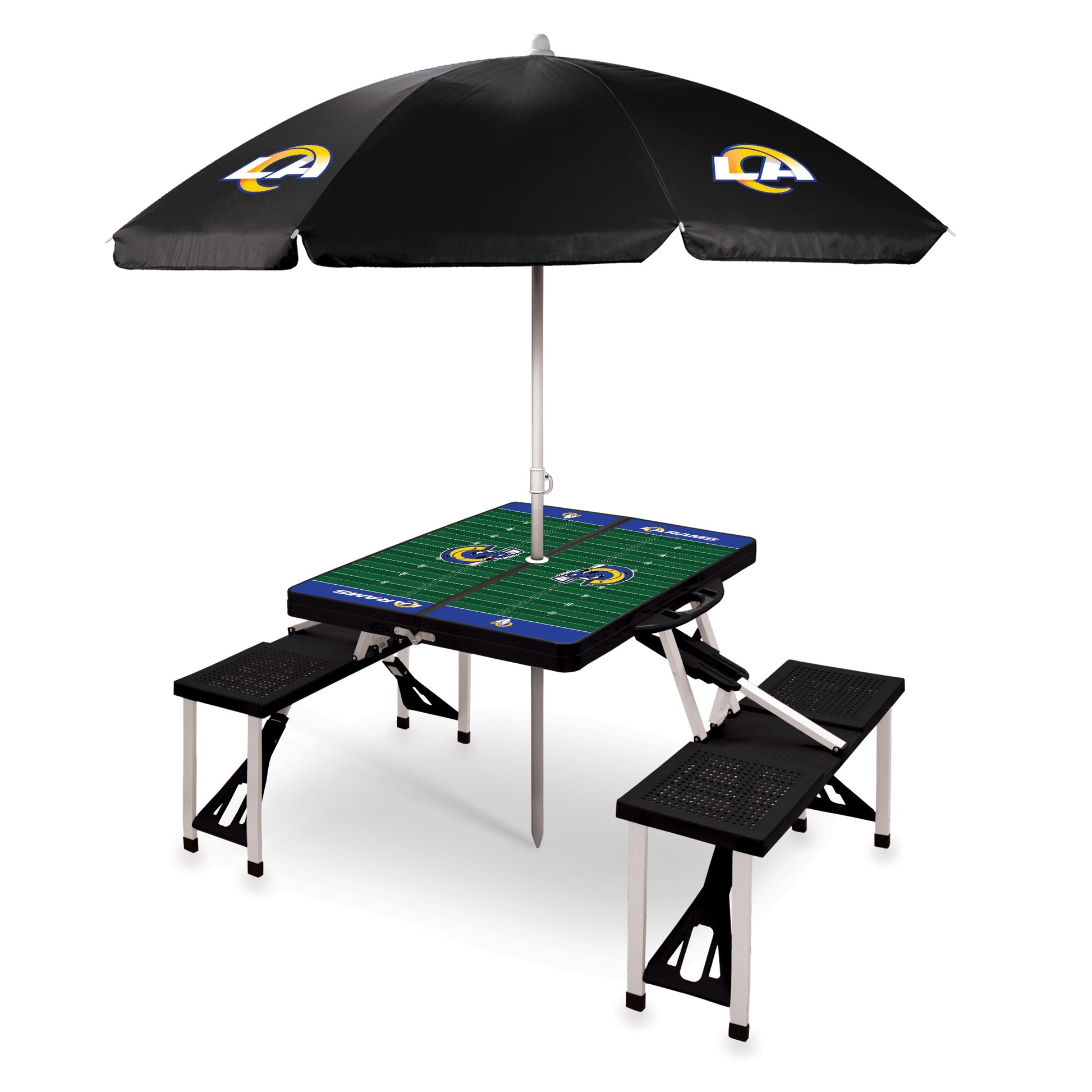 Los Angeles Rams - Picnic Table Portable Folding Table with Seats and Umbrella
