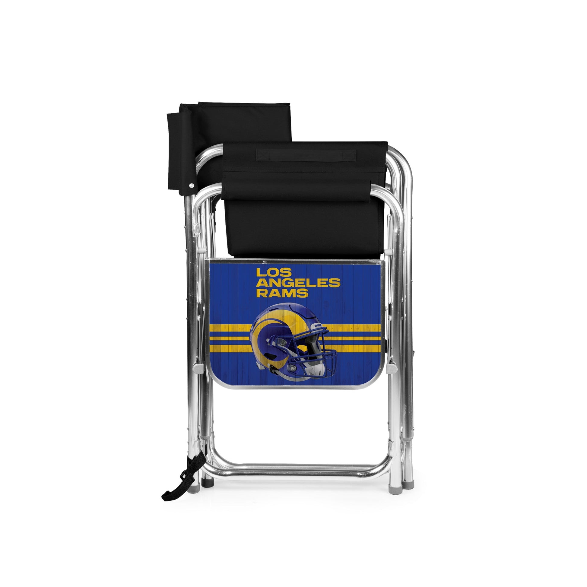 Show your team spirit year round - the Los Angeles Rams Sports Chair with Side Table is the last and greatest portable outdoor folding chair you’ll ever need. With classic lines and modern touches, this smart travel chair made of durable polyester canvas on a foldable and lightweight aluminum frame is the deluxe folding chair you deserve. Your seat is extra-wide (19.5") and made of durable 600D polyester, so you know it’s built to last. Features abound on this lawn and picnic-ready directors chair with padded seat and armrests, fold-out side table, hanging armrest caddy for holding books & magazines, two insulated beverage pockets, and a variety of additional pockets for extras. Grab-and-go with the underseat carrying handles or use the adjustable, detachable shoulder strap for longer treks to the campsite, the beach, or across the stadium. This outdoor camping chair is ideal for camping, picnicking, concerts in the park, or watching your favorite sport comfortably from the sidelines. Your companions may be melting in the summer heat, but you've got shade for days with the Oniva Beach Umbrella (sold separately) attached to the built-in umbrella loop. But there’s no need to gloat - this outdoor camping chair does all the bragging for you without saying a word. Adorned with your favorite team logo on the back of the chair and a decorated tabletop no one will mistake who you're cheering for this season.